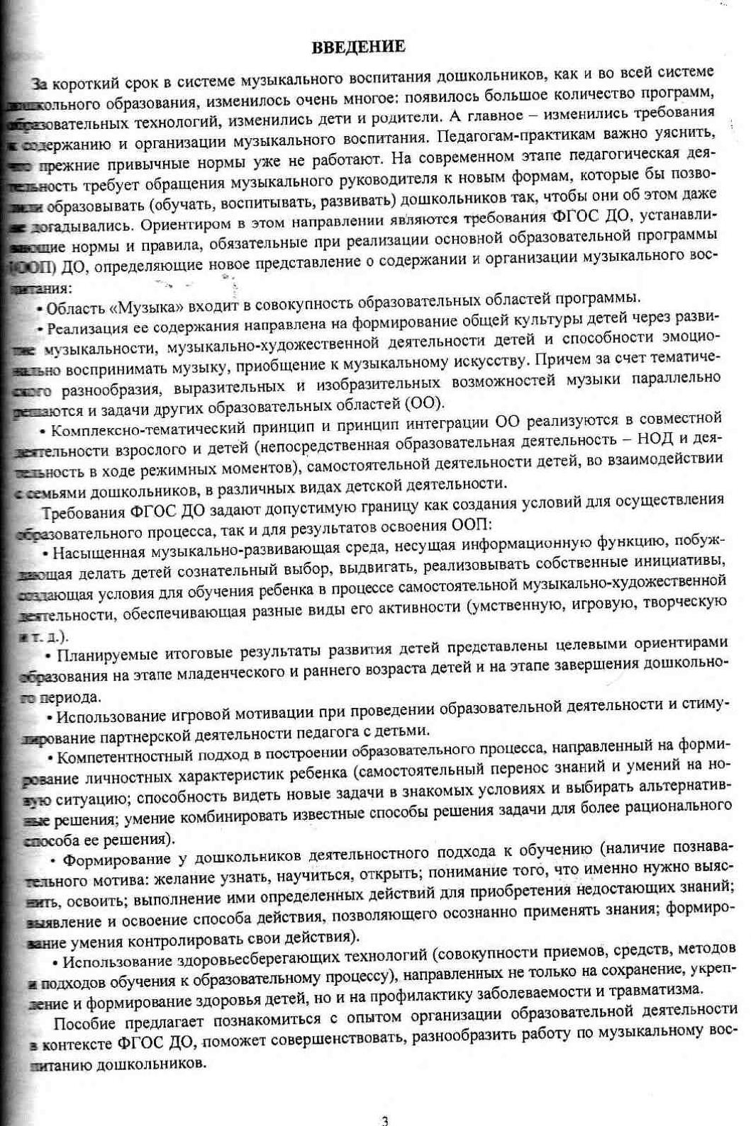 На современном этапе педагогическая деятельность требует обращения музыкального руководителя к новым формам, которые бы позволили образовывать (обучать, воспитывать, развивать) дошкольников так, чтобы они об этом даже не догадывались. Материал пособия раскрывает опыт обязательных при реализации содержания и организации освоения детьми области "Художественно-эстетическое развитие" (музыкальное воспитание) компонентов в контексте ФГОС ДО и позволяет совершенствовать, разнообразить работу по музыкальному воспитанию дошкольников.