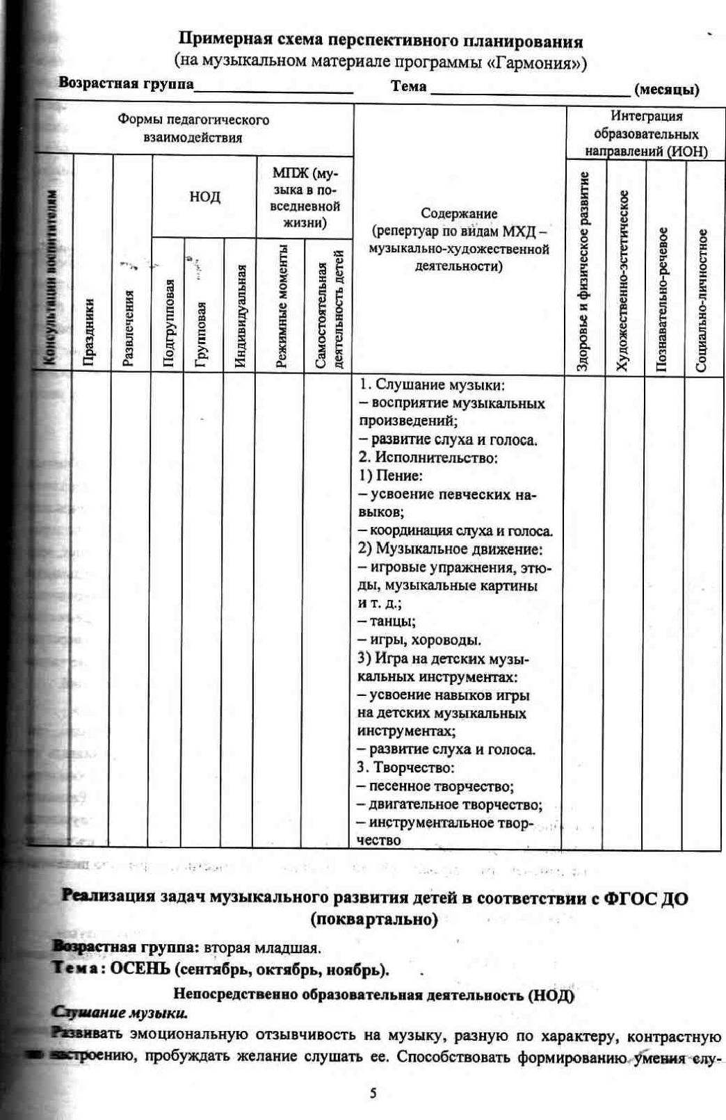 "Настольная книга музыкального руководителя" - это своеобразное творческое портфолио, включающее различные формы и виды непосредственной образовательной и совместной со взрослыми деятельности в их интеграции (игровые, здоровьесберегающие, валеологические, изобразительные, продуктивные), организации летнего досуга, взаимодействия с семьей, проекты, рекомендации к построению предметно-развивающей музыкальной среды, комплексно-тематическое перспективное планирование.