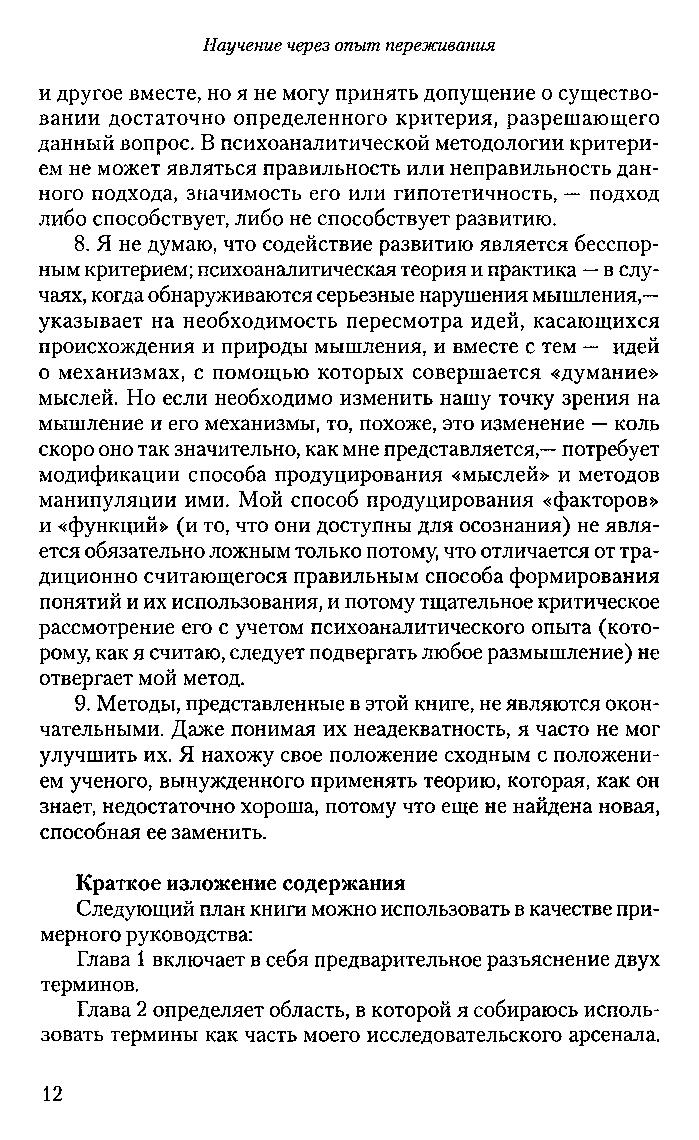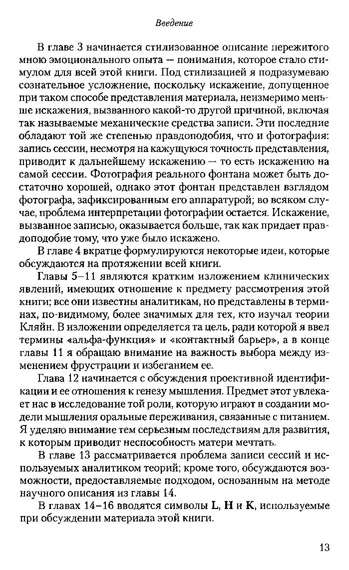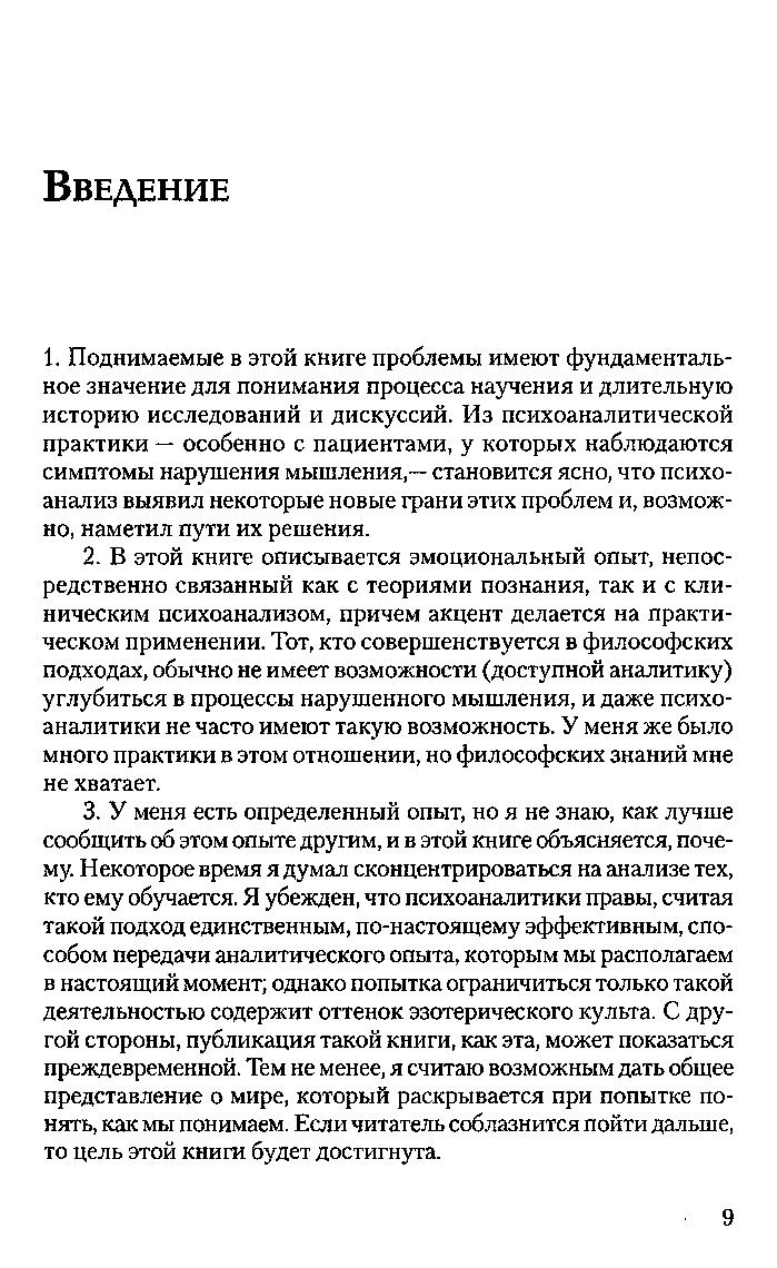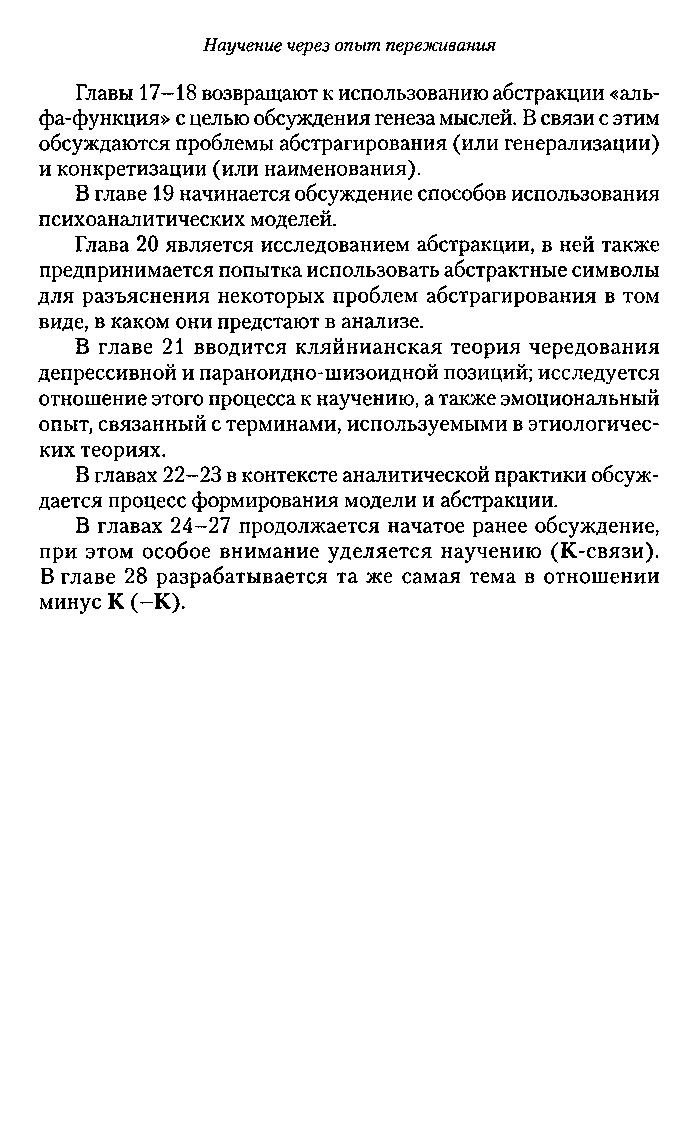 Проблемы, рассматриваемые в книге, имеют фундаментальное значение для понимания процесса научения. В ней описывается эмоциональный опыт автора, непосредственно связанный как с теориями познания, так и с клиническим психоанализом, причем