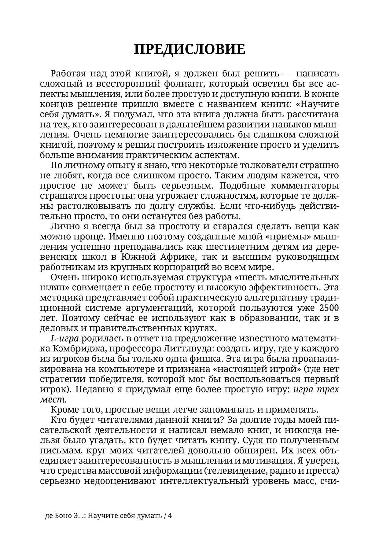 Широкому кругу читателей предлагается развить и улучшить навык мышления с помощью очень простой методики, насчитывающей всего 5 элементов.