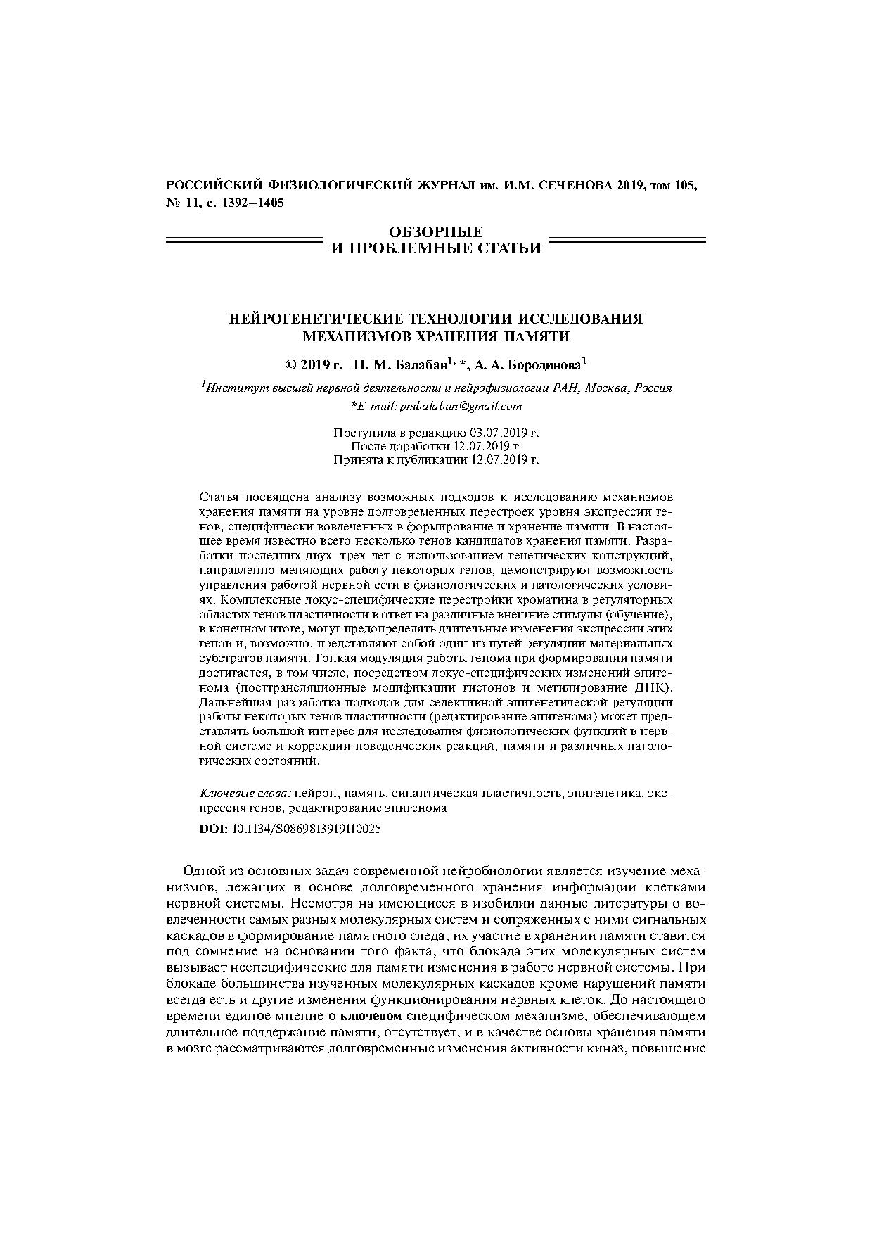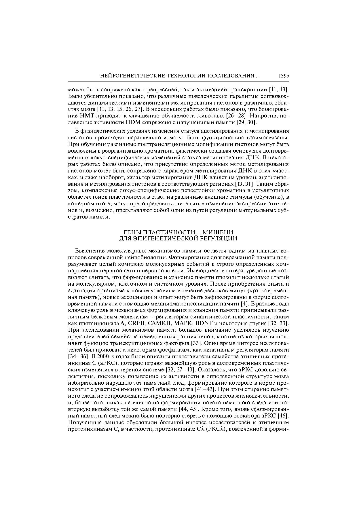 Статья посвящена анализу возможных подходов к исследованию механизмов хранения памяти на уровне долговременных перестроек уровня экспрессии генов, специфически вовлеченных в формирование и хранение памяти.