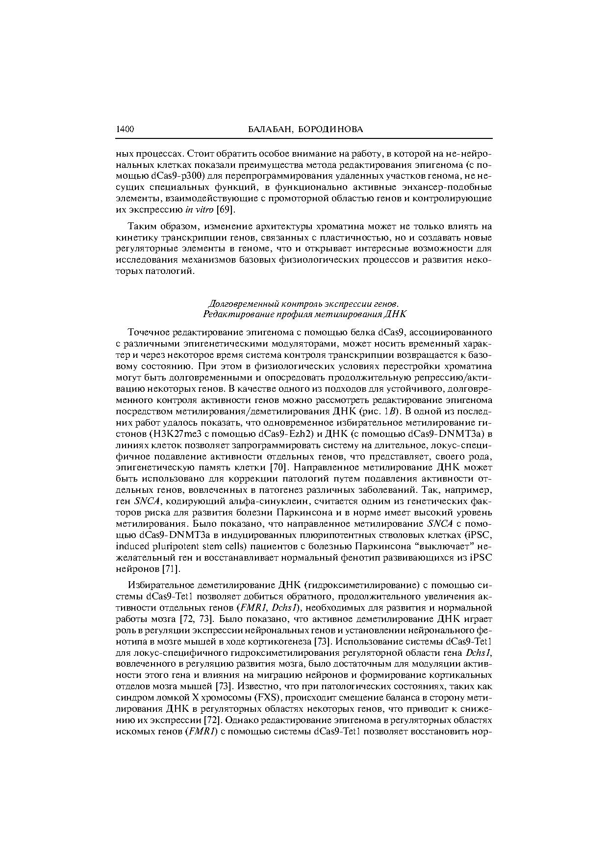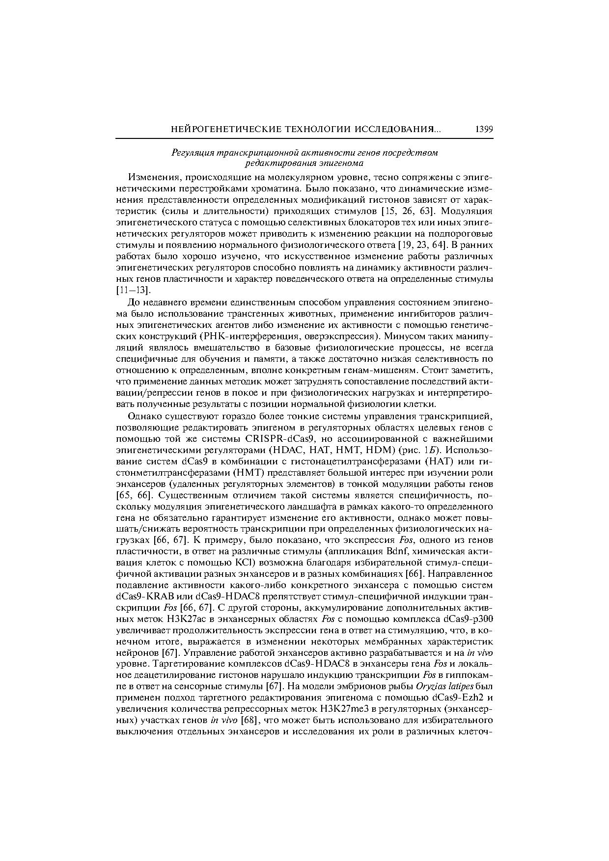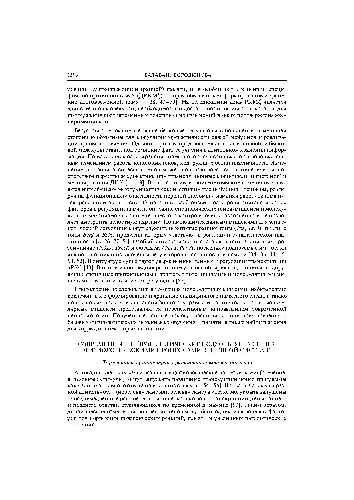 Тонкая модуляция работы генома при формировании памяти достигается, в том числе, посредством локус-специфических изменений эпигенома (посттрансляционные модификации гистонов и метилирование ДНК). Дальнейшая разработка подходов для селективной эпигенетической регуляции работы некоторых генов пластичности (редактирование эпигенома) может представлять большой интерес для исследования физиологических функций в нервной системе и коррекции поведенческих реакций, памяти и различных патологических состояний.