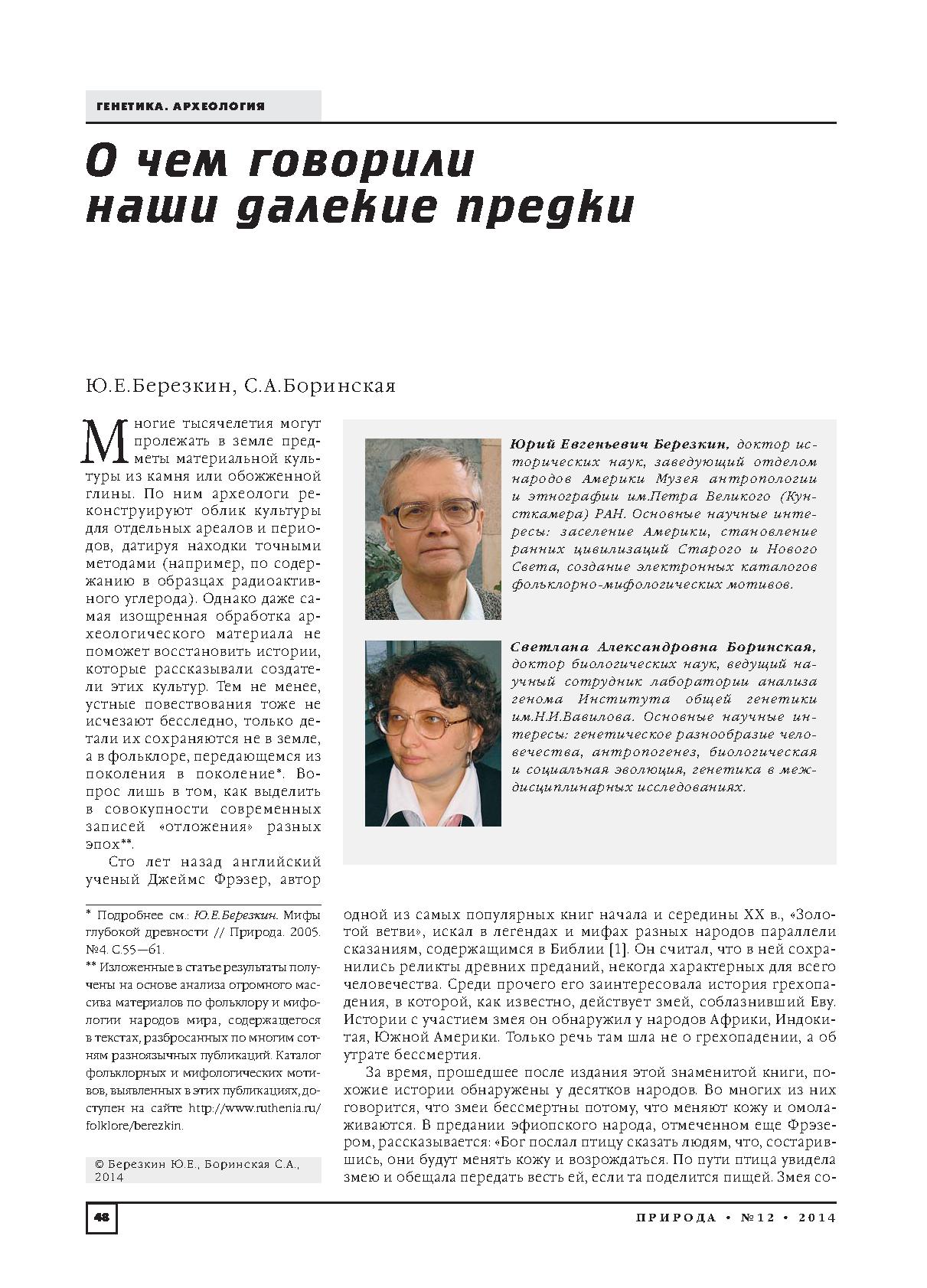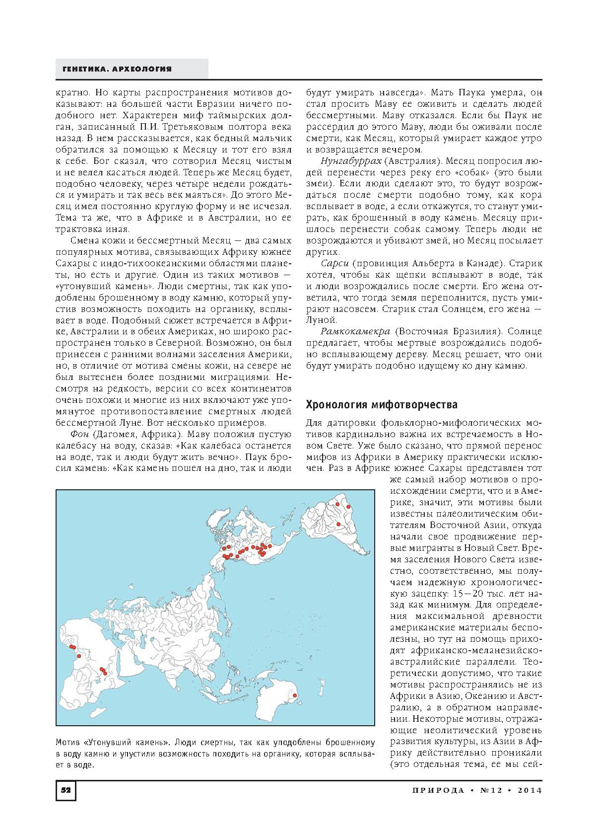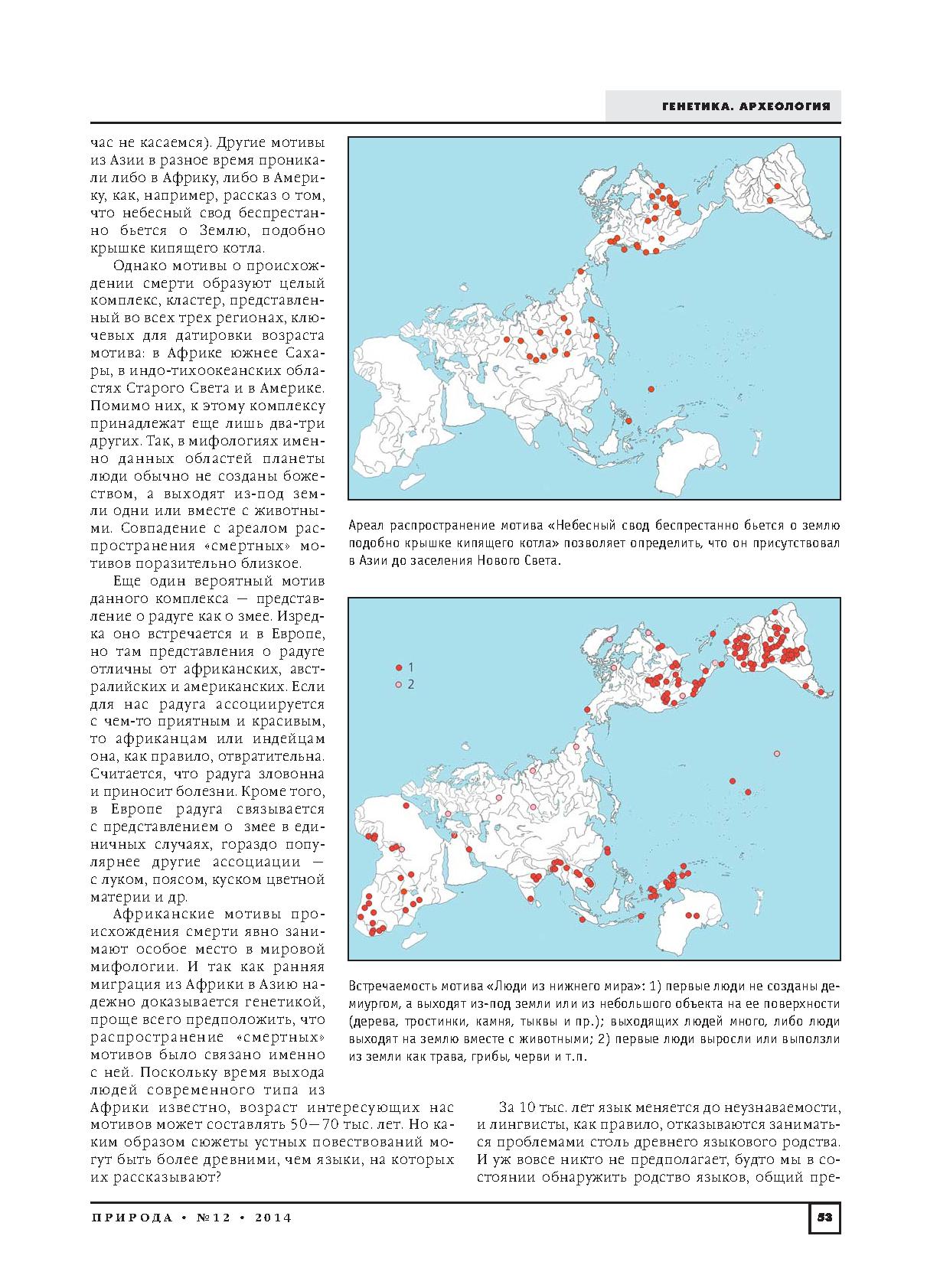 Изложенные в статье результаты получены на основе анализа огромного массива материалов по фольклору и мифологии народов мира, содержащегося в текстах, разбросанных по многим сотням разноязычных публикаций.