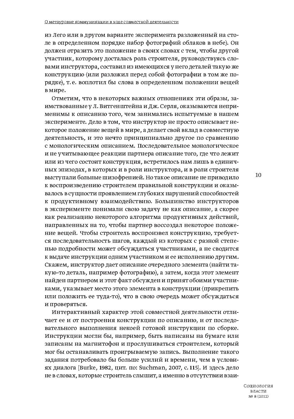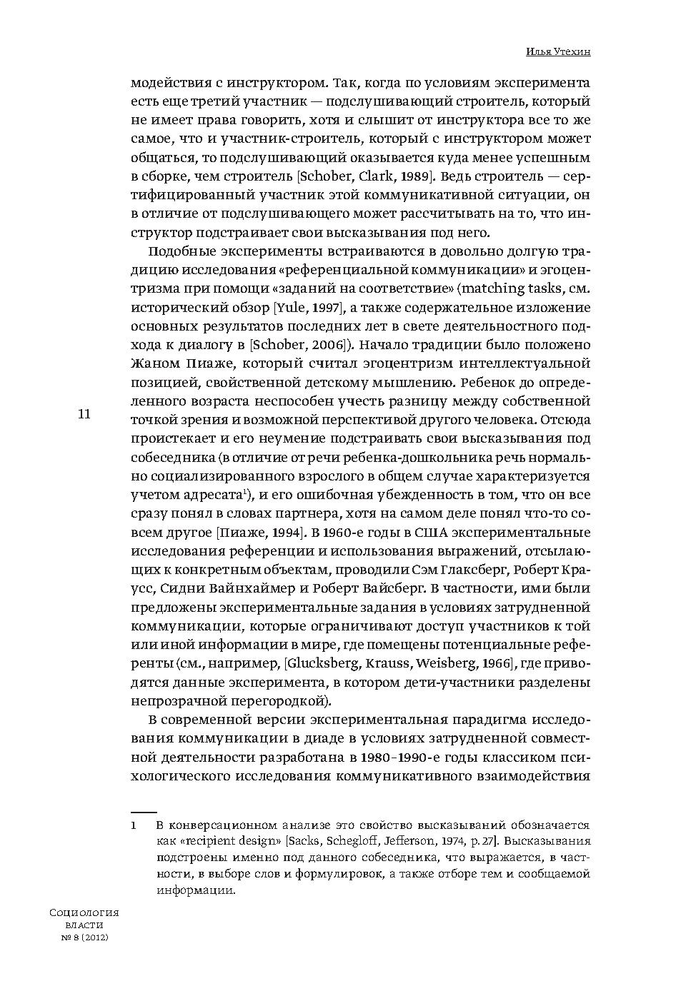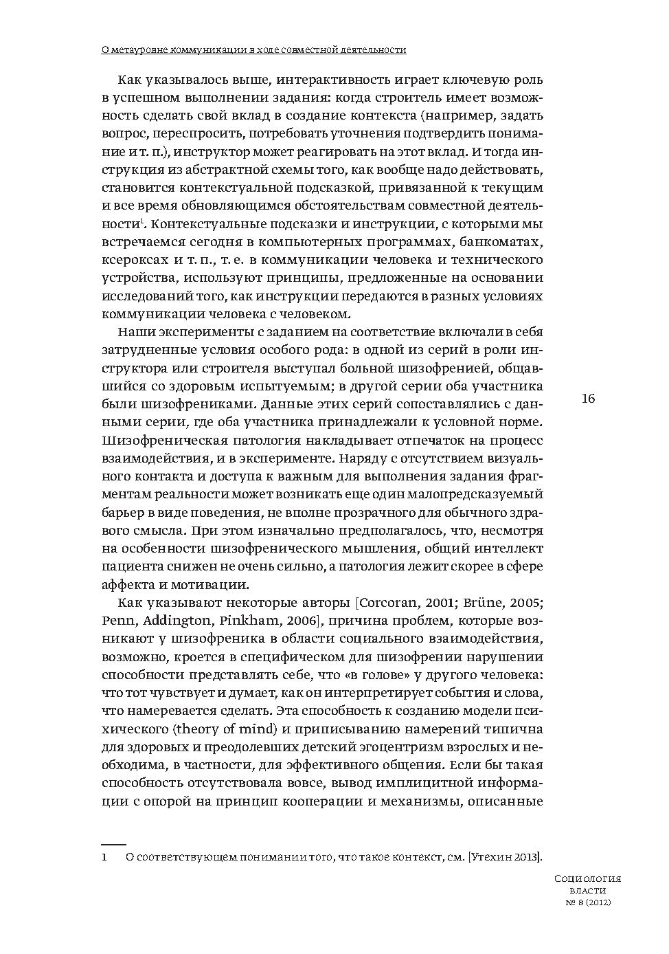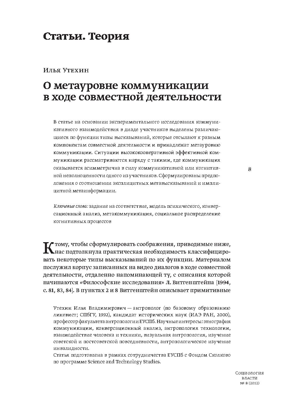 В статье на основании экспериментального исследования коммуникативного взаимодействия в диаде участников выделены различающиеся по функции типы высказываний, которые отсылают к разным компонентам совместной деятельности и принадлежат метауровню коммуникации. Ситуации высококооперативной эффективной коммуникации рассматриваются наряду с такими, где коммуникация оказывается асимметрична в силу коммуникативной или когнитивной неполноценности одного из участников.