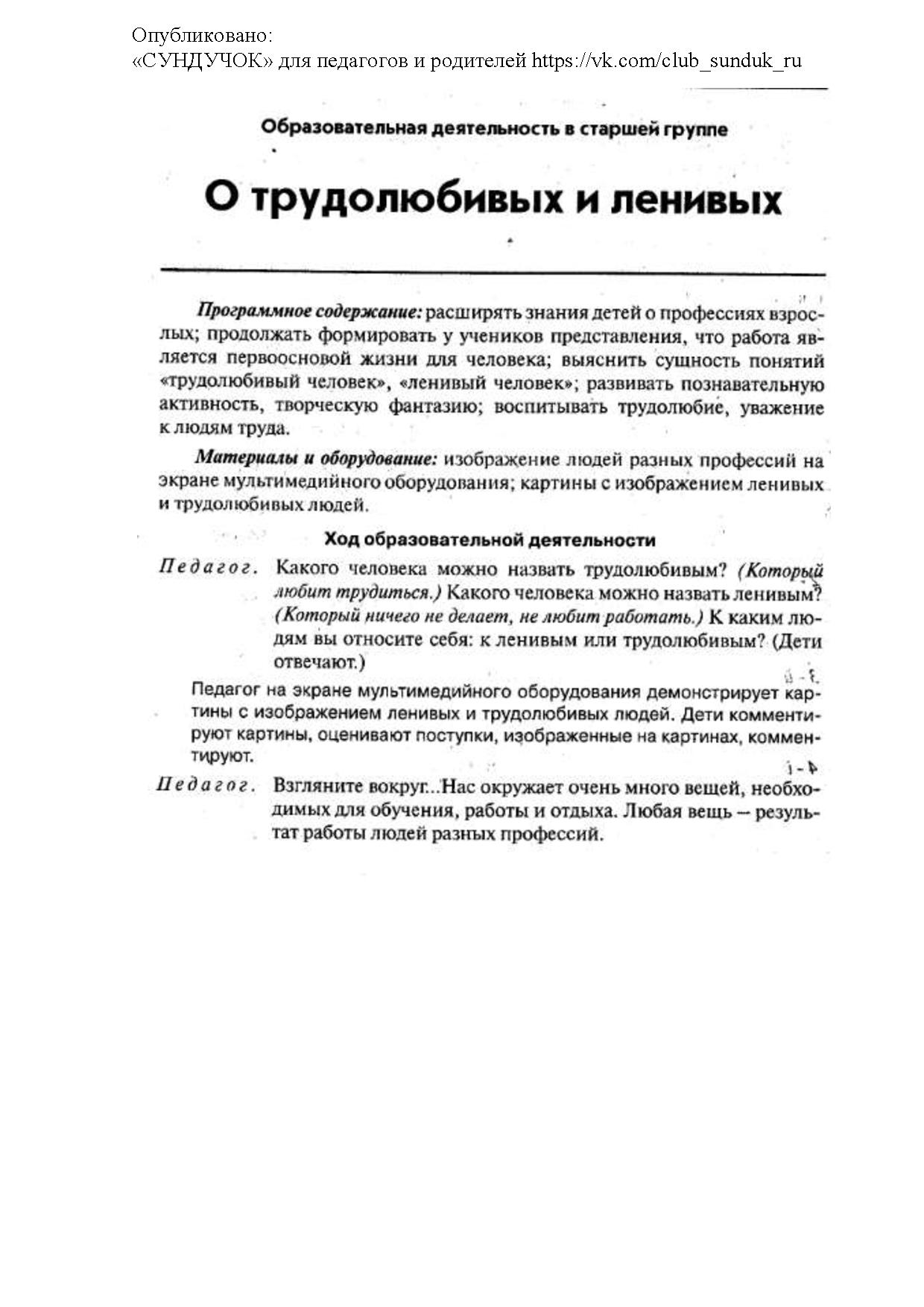 - знакомить детей с характерологическими особенностями человека: ленью, трудолюбием;