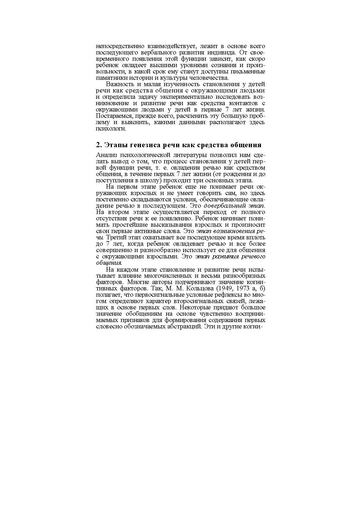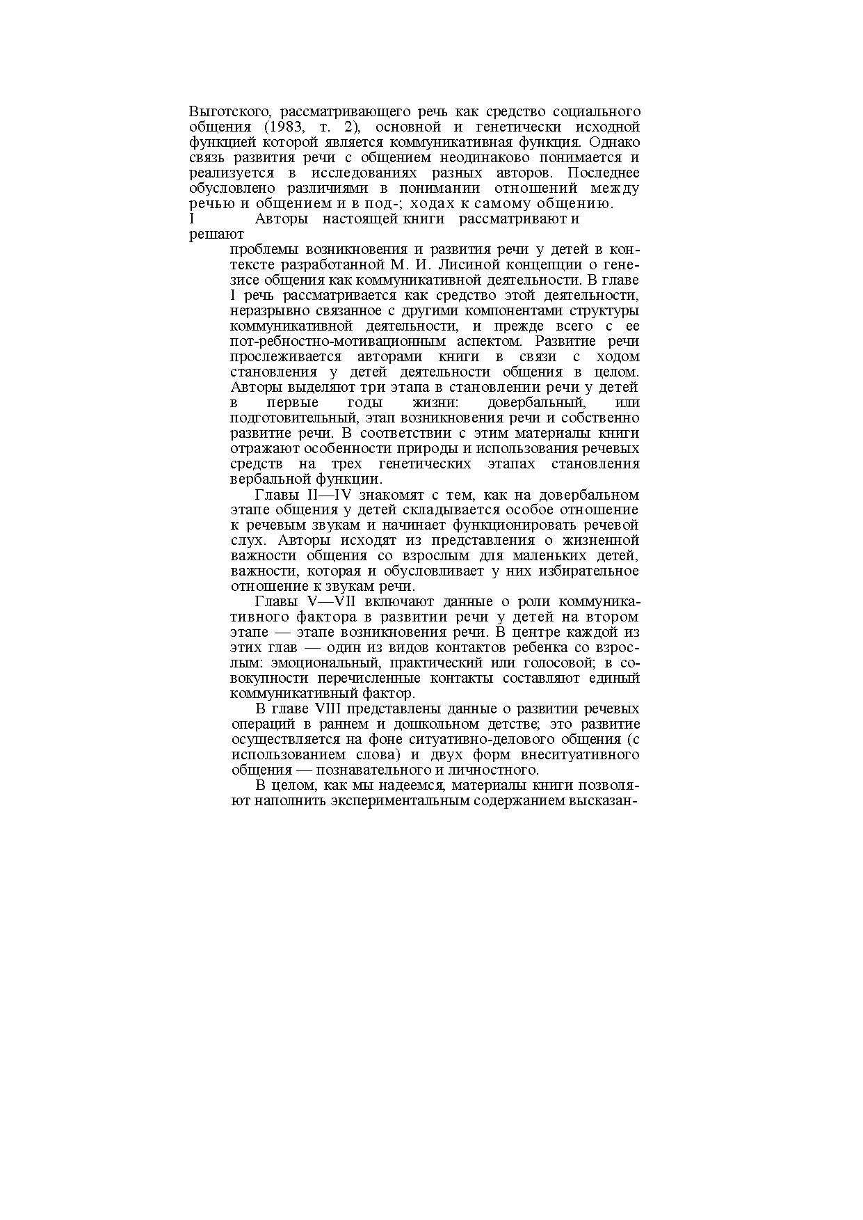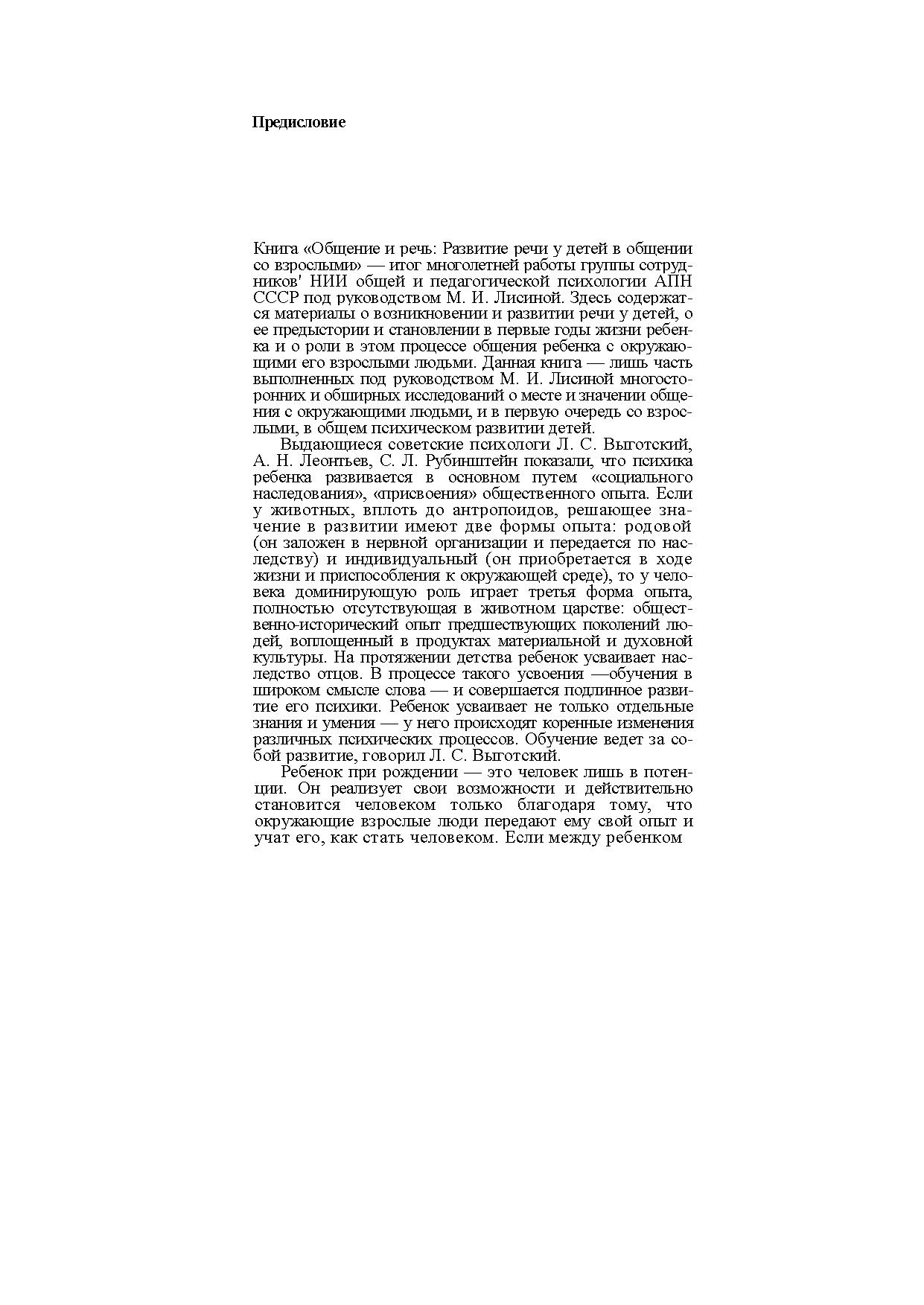 Монография посвящена вопросам влияния общения детей со взрослыми на возникновение и развитие речи у ребенка в первые 7 лет жизни. Речь рассматривается как наиболее эффективное, емкое и обобщающее средство общения, появляющееся в онтогенезе позже других средств.