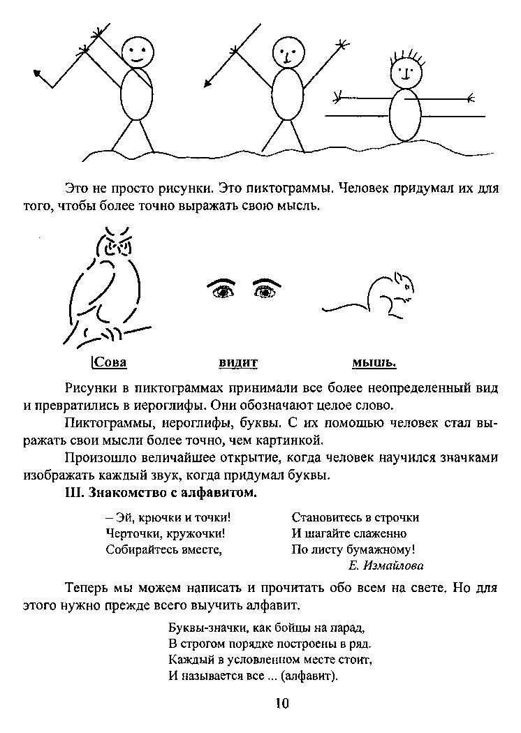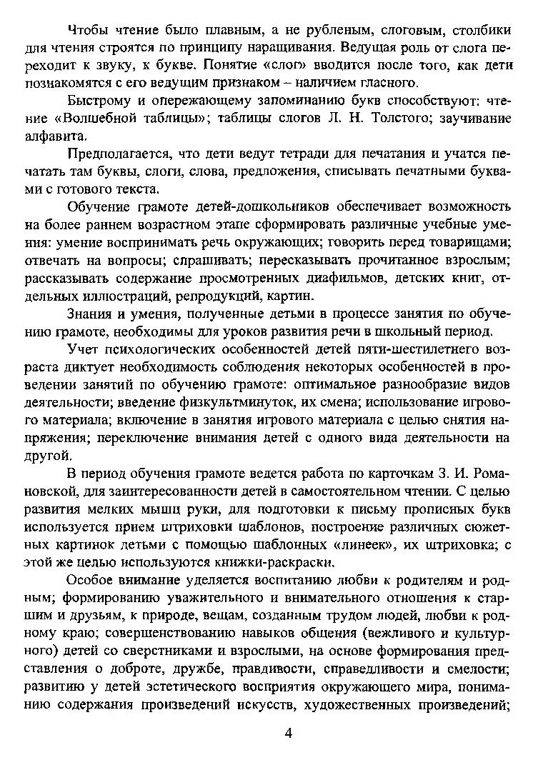 Обучение грамоте строится на аналитико-синтетическом звукобуквенном методе. Программа обучения рассчитана на 33 часа.