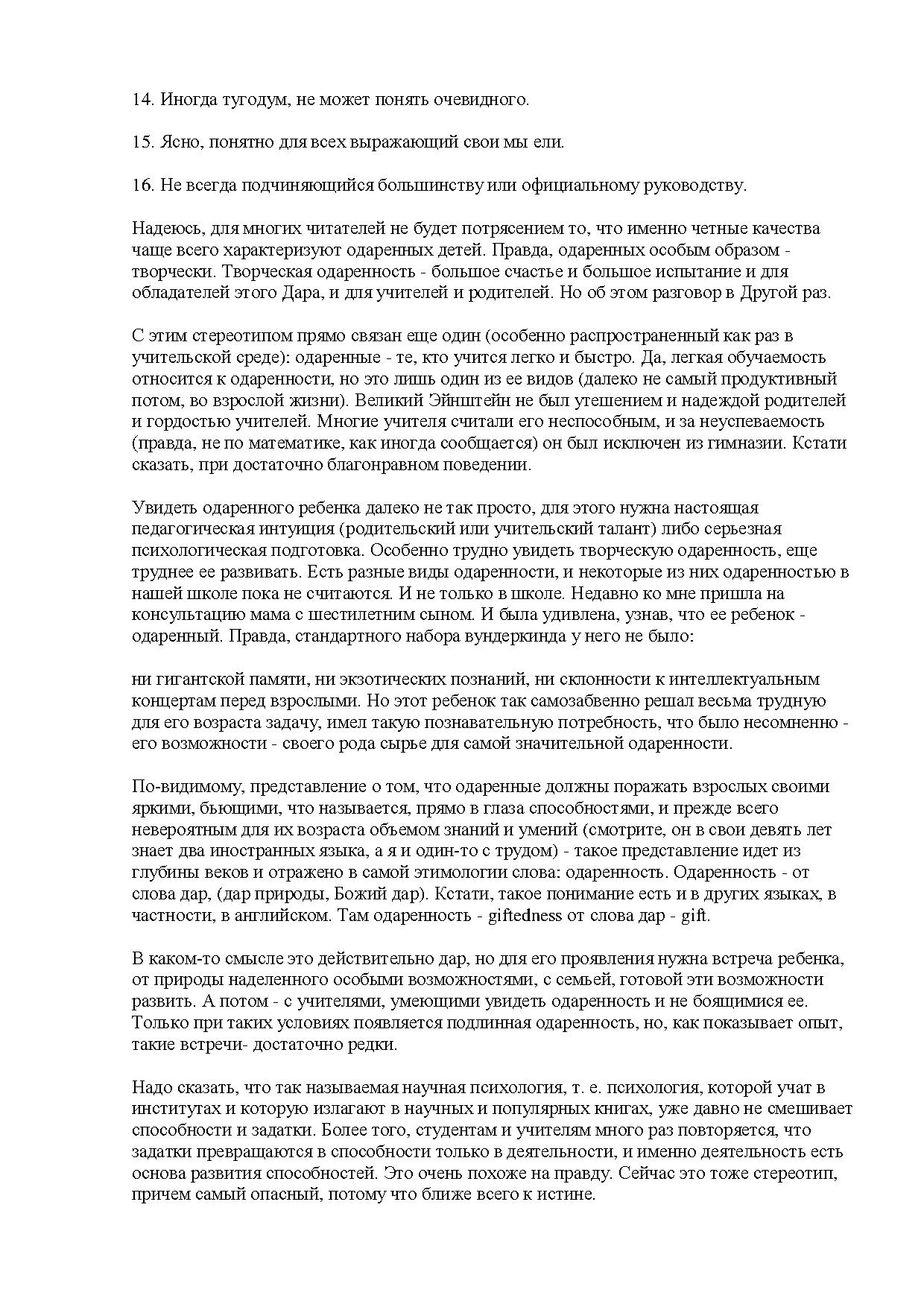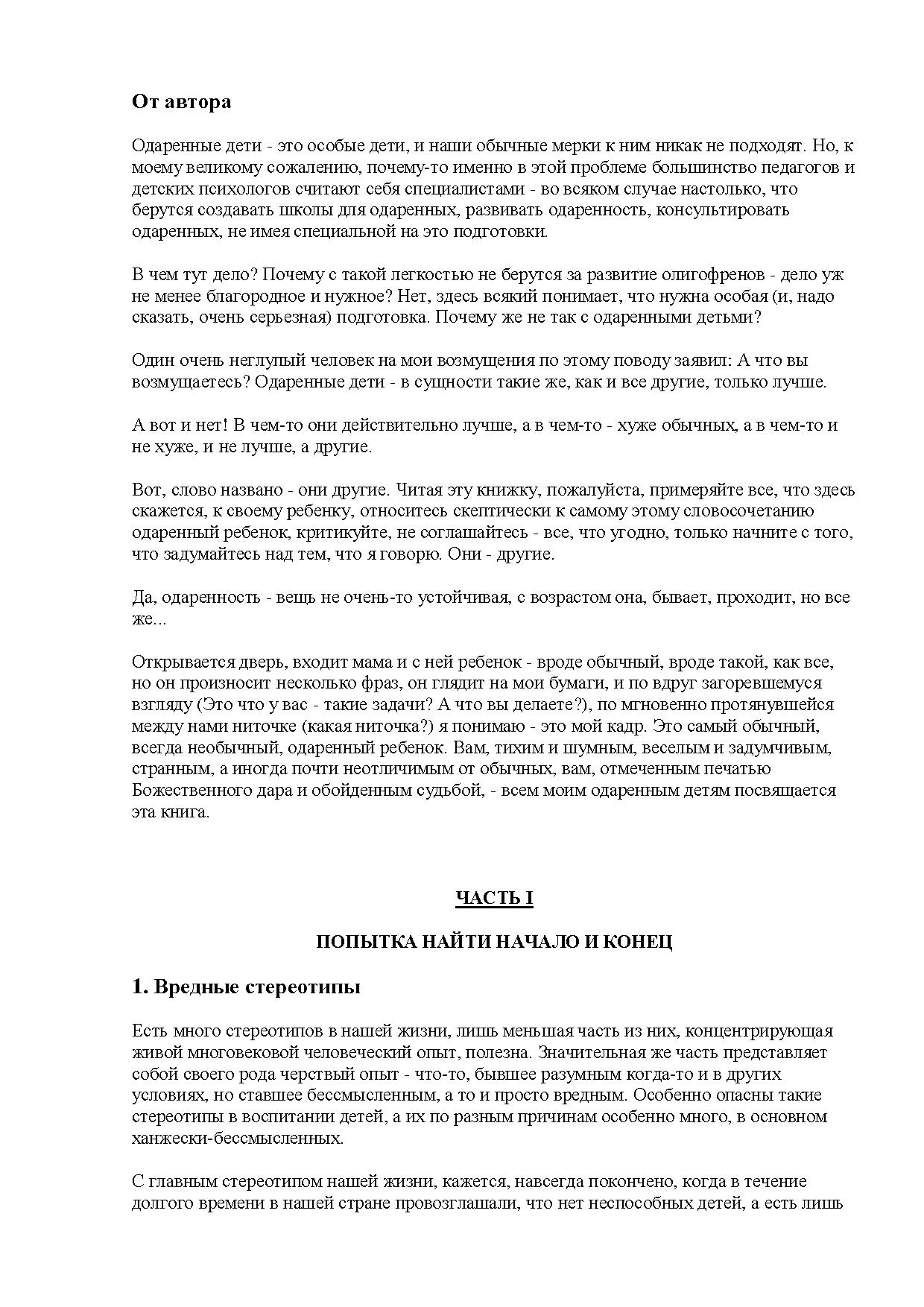 Вот, слово названо - они другие. Читая эту книжку, пожалуйста, примеряйте все, что здесь скажется, к своему ребенку, относитесь скептически к самому этому словосочетанию одаренный ребенок, критикуйте, не соглашайтесь - все, что угодно, только начните с того, что задумайтесь над тем, что я говорю. Они - другие.