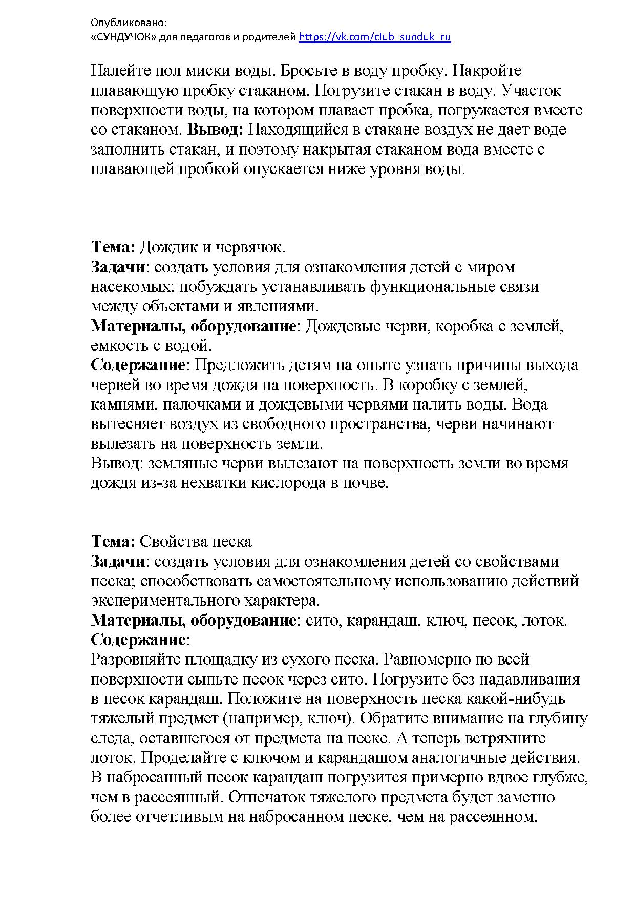 Знания, которые получены опытным путём, легче всего постигаются детьми и фиксируются долгосрочной памятью. У старших дошкольников сформированы элементарные исследовательские навыки, они переходят к самостоятельному планированию экспериментирования и способны различными методами (в т. ч. при помощи необходимых инструментов) проверять правильность своих предположений.