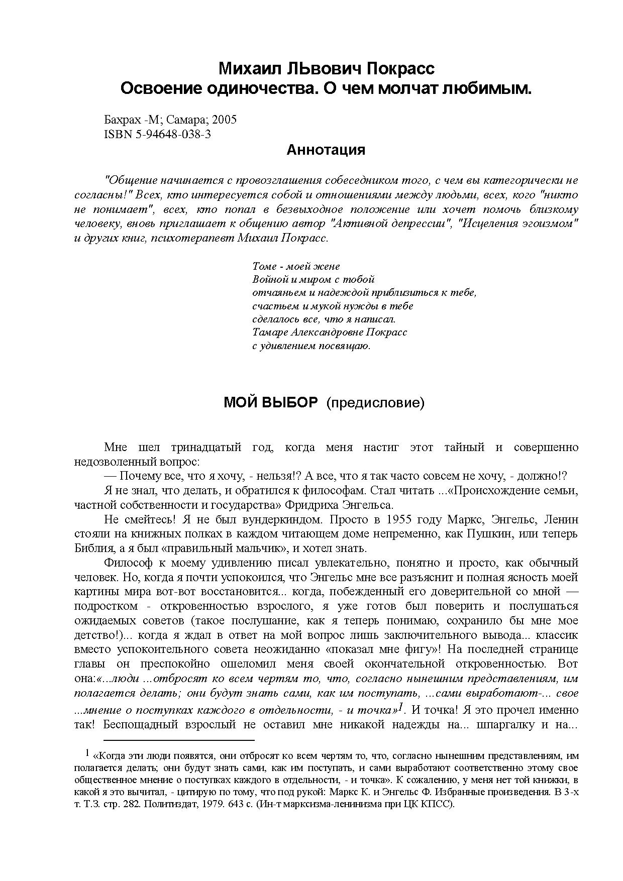 «Общение начинается с провозглашения собеседником того, с чем вы категорически не согласны!» Всех, кто интересуется собой и отношениями между людьми, всех, кого «никто не понимает», всех, кто попал в безвыходное положение или хочет помочь близкому человеку, вновь приглашает к общению автор «Активной депрессии», «Исцеления эгоизмом» и других книг, психотерапевт Михаил Покрасс.