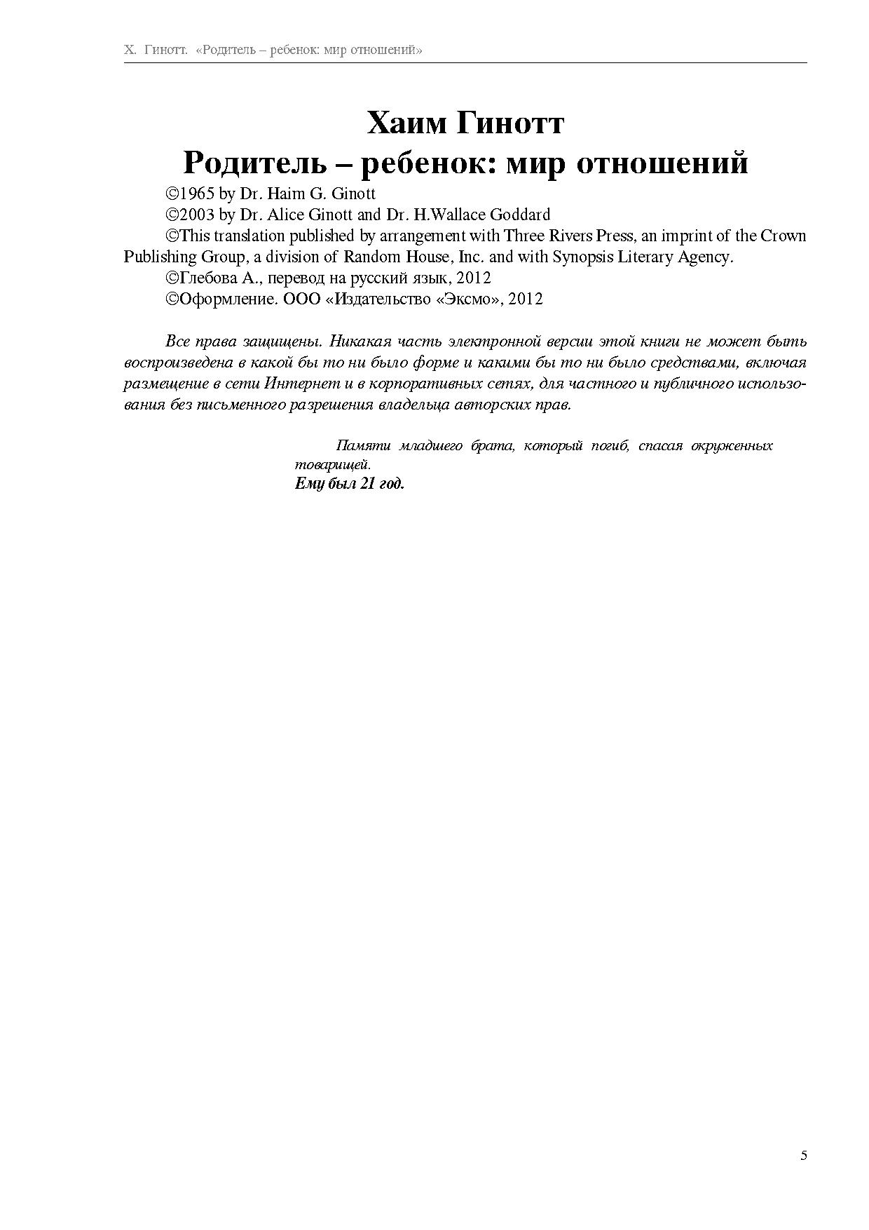 В своей книге доктор Гинотт предлагает родителям созвучные внутреннему миру ребенка, но при этом действенные методы воспитания, которые учат взрослых эффективно общаться с детьми. Каждая рекомендация сопровождается увлекательными примерами из профессиональной практики автора, живыми и забавными диалогами между детьми и родителями.