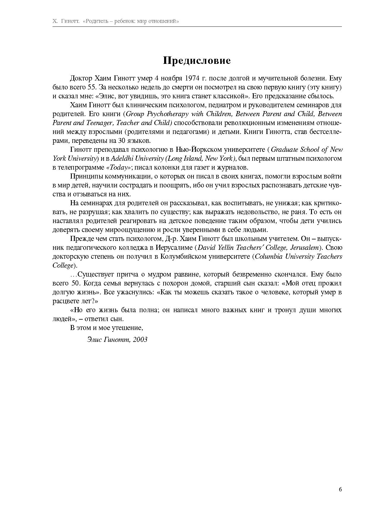 За эти годы ее совокупный тираж составил свыше пяти миллионов экземпляров. Сегодня она по праву считается классическим бестселлером, в свое время совершившим революцию в сфере воспитания и внутрисемейных коммуникаций. Именно идеи Хаима Гинотта вдохновили Адель Фабер и Элен Мазлиш на создание бестселлера «Как говорить, чтобы дети слушали, и как слушать, чтобы дети говорили».