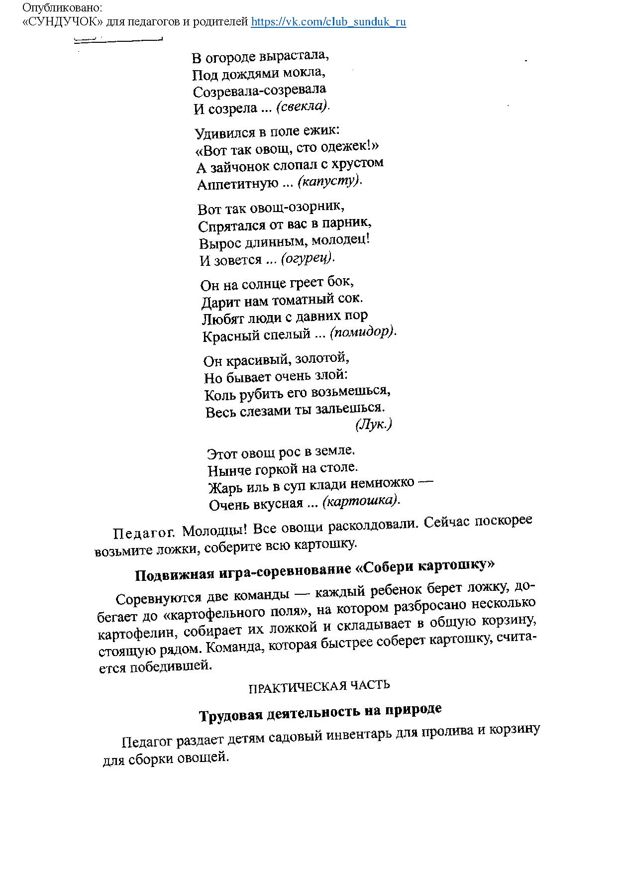 - Формировать представления о работах, проводимых в весенний период в огороде.