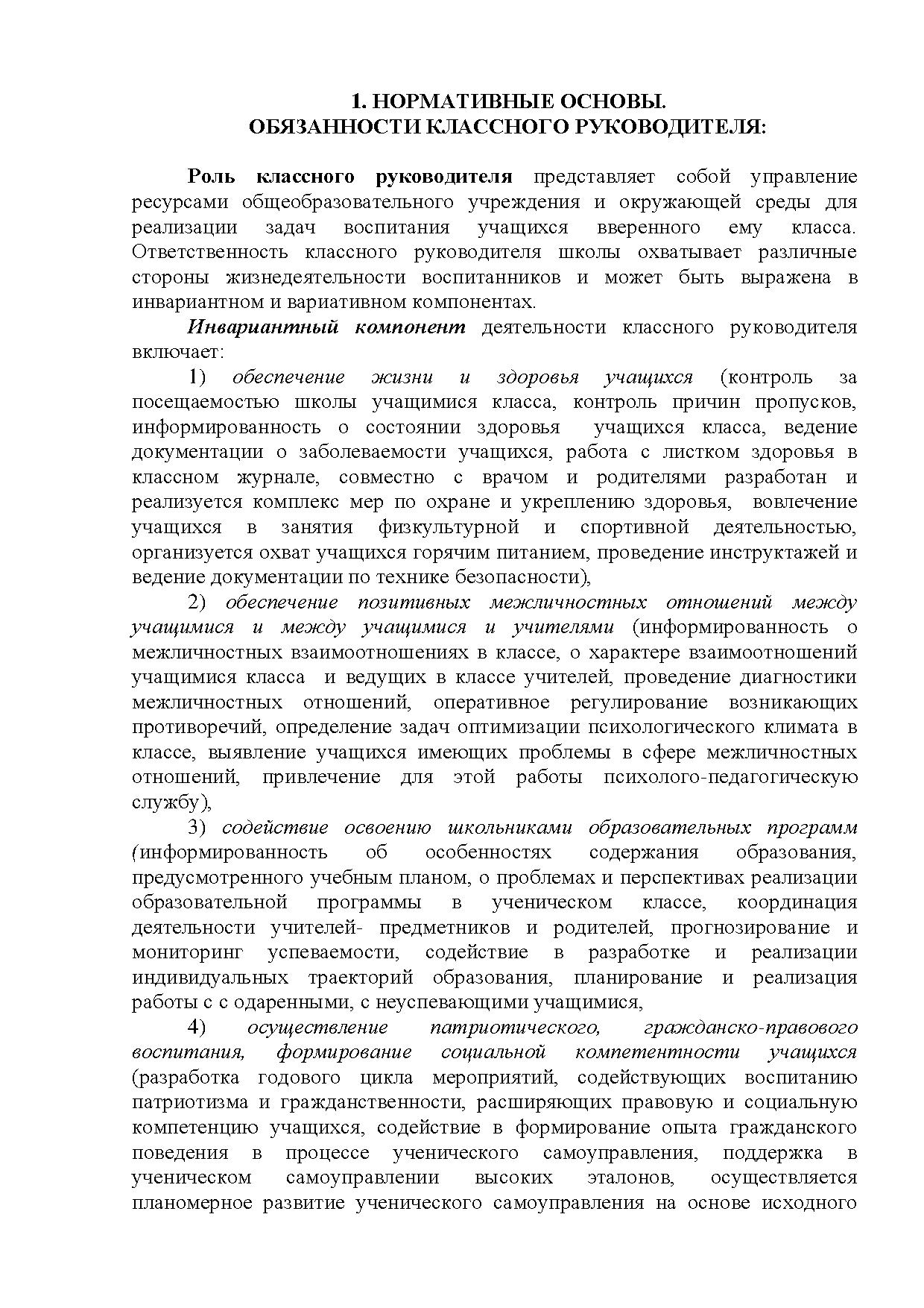 Ответственность классного руководителя школы охватывает различные стороны жизнедеятельности воспитанников и может быть выражена в инвариантном и вариативном компонентах.