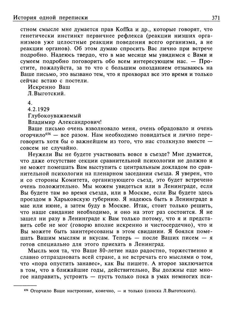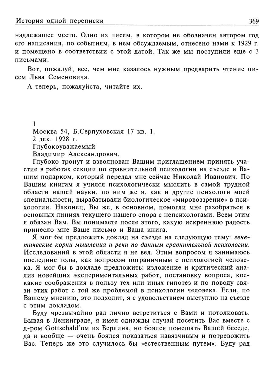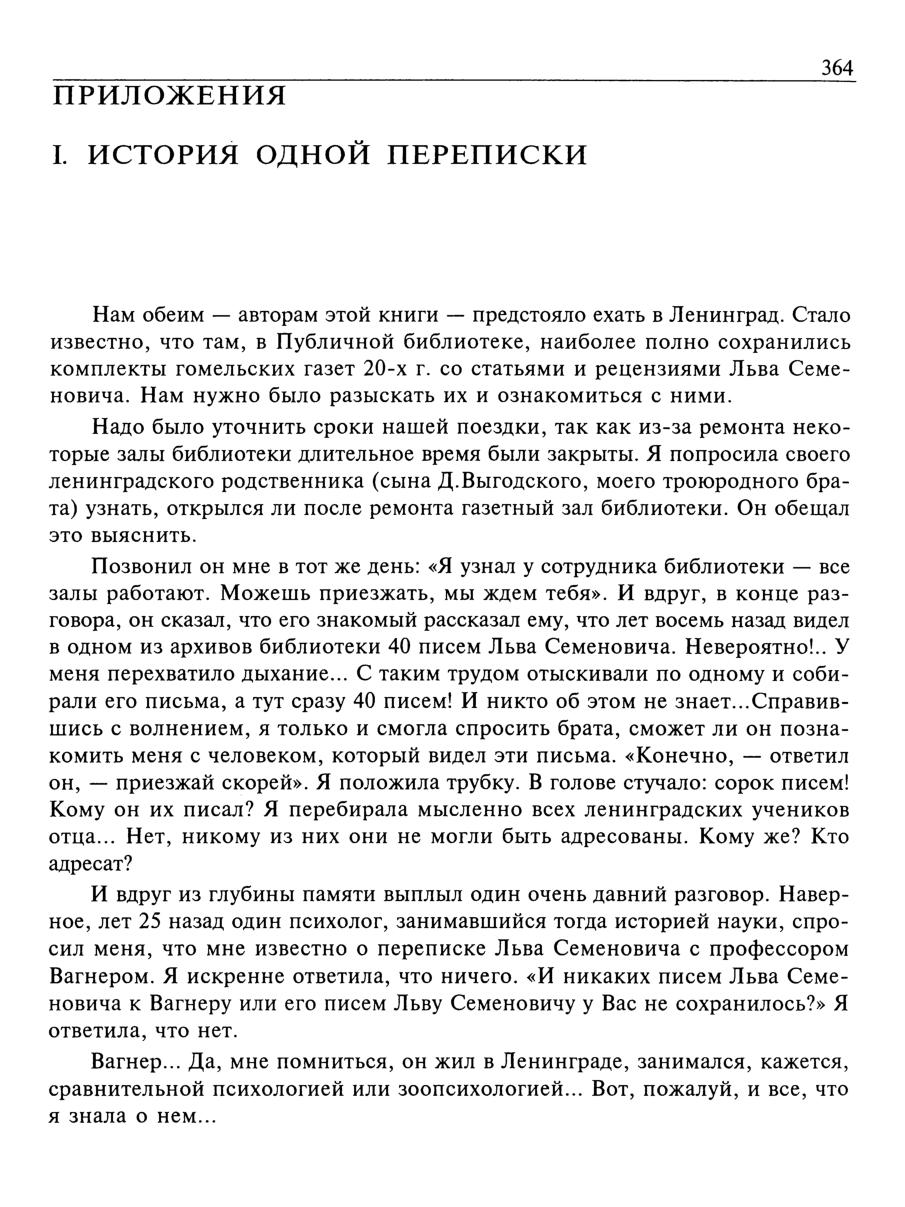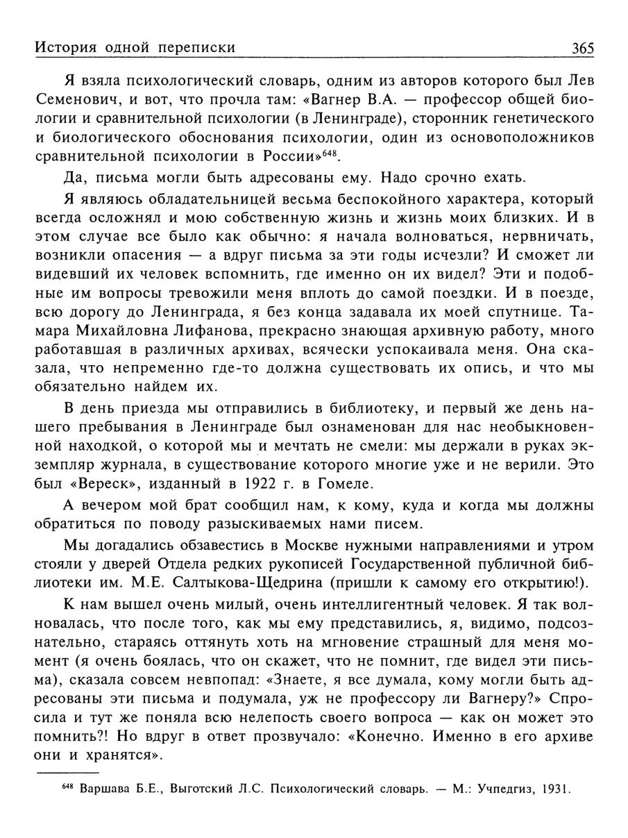 Знакомство с неопубликованной перепиской этих двух ученых (к сожалению, письма Вагнера к Выготскому не сохранились, и об их содержании можно судить лишь по ответам последнего) свидетельствует об огромном влиянии, которое оказывал Вагнер на своего молодого коллегу.