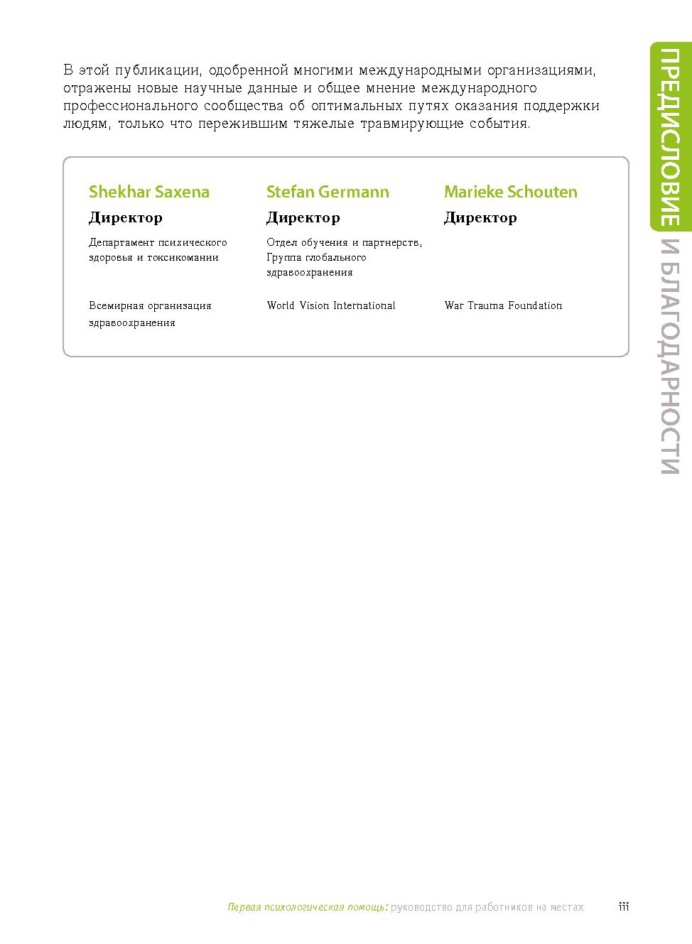 В этой публикации, одобренной многими международными организациями, отражены новые научные данные и общее мнение международного профессионального сообщества об оптимальных путях оказания поддержки людям, только что пережившим тяжелые травмирующие события.