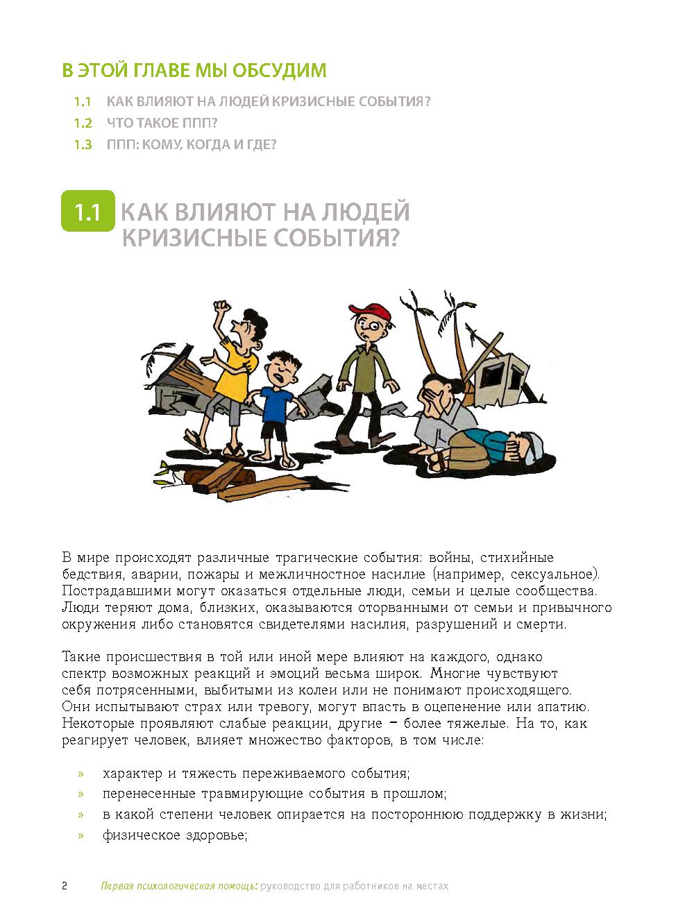 Данное руководство разработано в качестве стандартного пособия по оказанию первой психологической помощи для использования в странах с низким и средним уровнем дохода. Приведенная здесь информация является типовой, и ее следует соответствующим образом адаптировать к местным условиям и культурным особенностям людей, которым вы будете оказывать помощь.