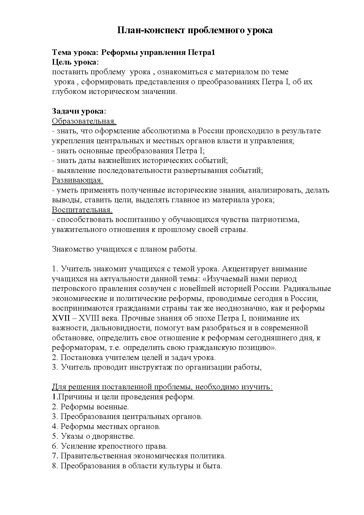 - знать, что оформление абсолютизма в России происходило в результате укрепления центральных и местных органов власти и управления;