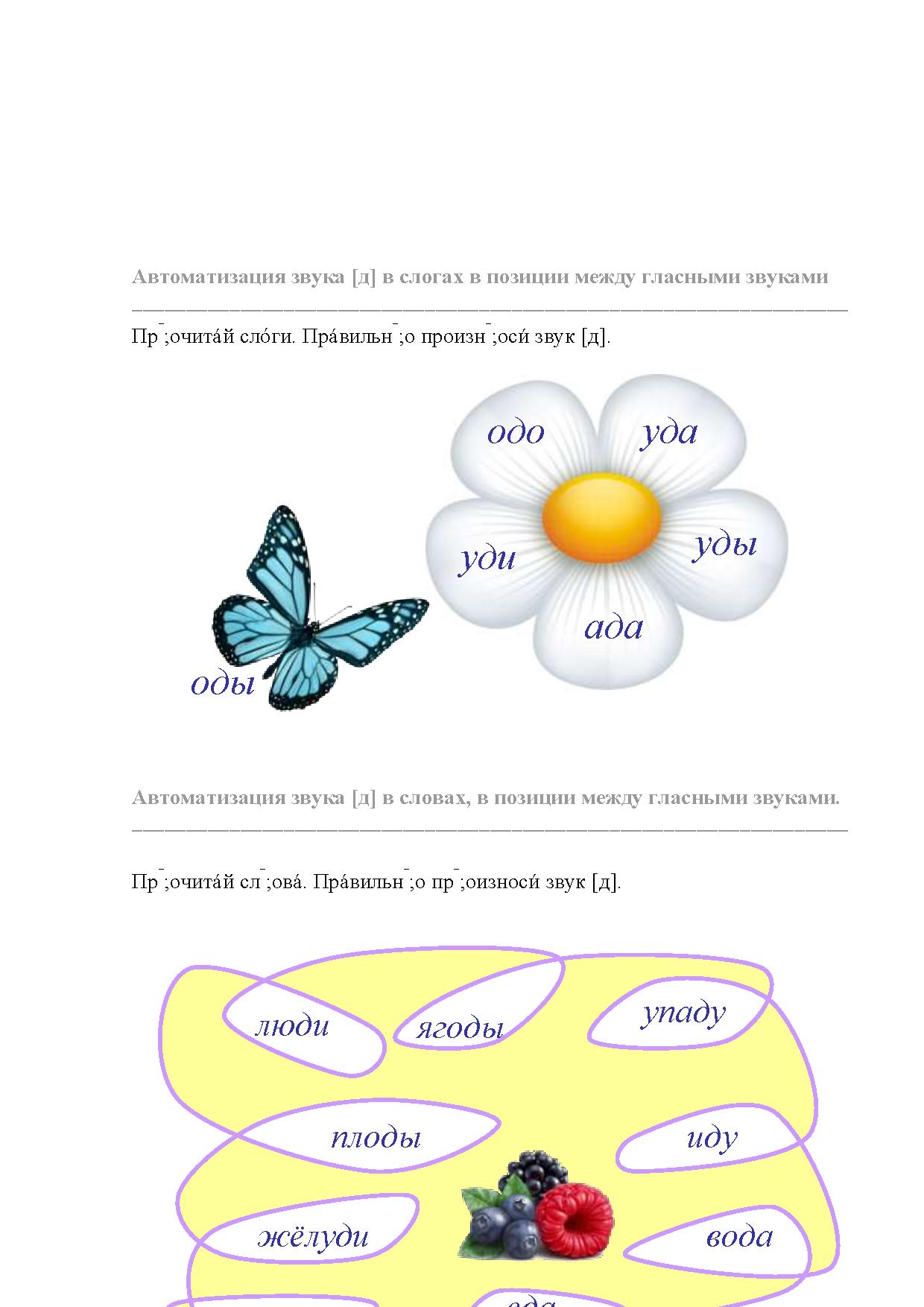 - Губы, углы рта, расстояние между верхними и нижними резцами принимают положение, свойственное им при произнесении гласного следующего за звуком [д];