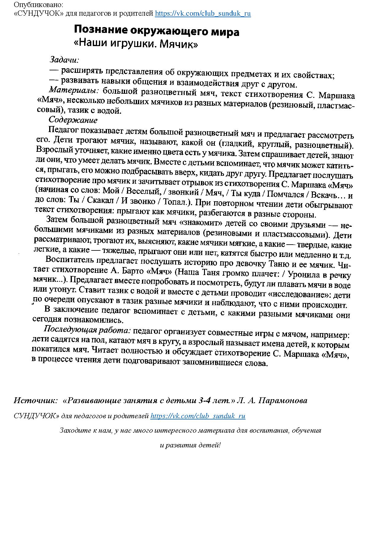 Развивать умение определять количество предметов с помощью слов «один», «много», цвет, познакомить детей с формой, объемом, свойствами резинового мяча.