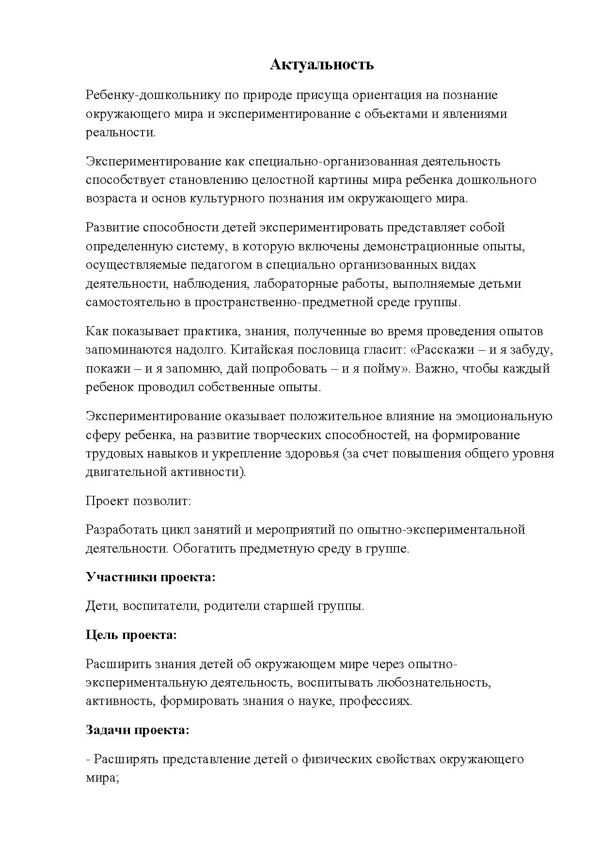 Как показывает практика, знания, полученные во время проведения опытов запоминаются надолго. Китайская пословица гласит: «Расскажи – и я забуду, покажи – и я запомню, дай попробовать – и я пойму». Важно, чтобы каждый ребенок проводил собственные опыты.