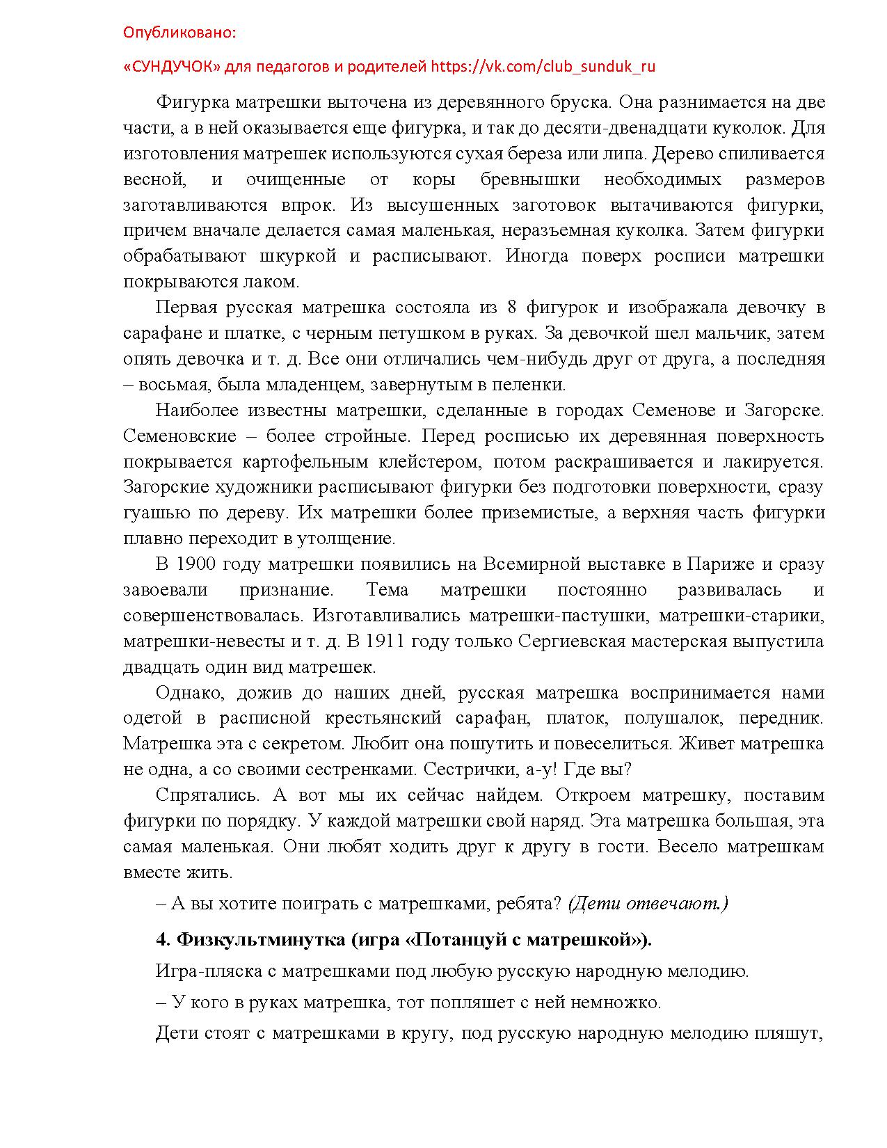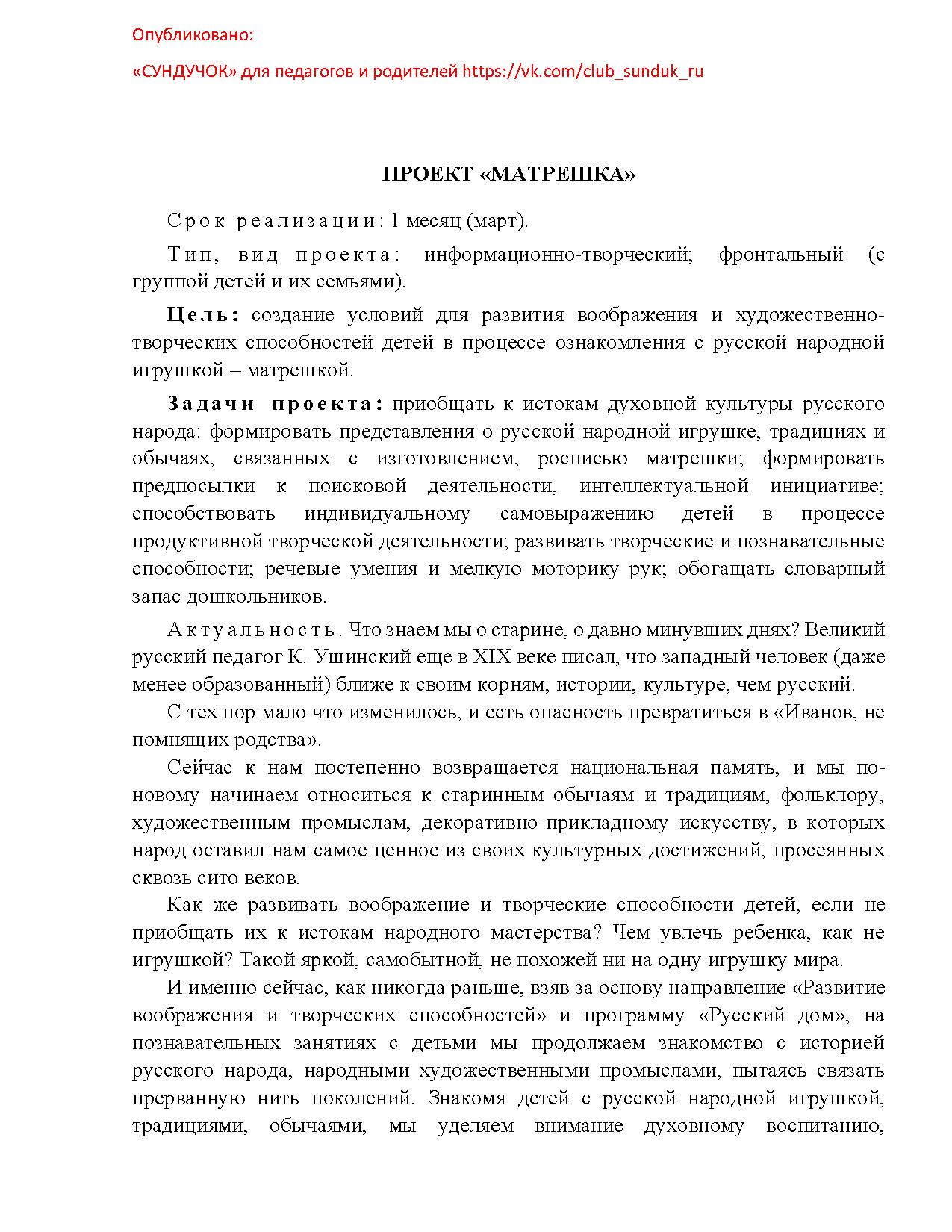 И именно сейчас, как никогда раньше, взяв за основу направление «Развитие воображения и творческих способностей» и программу «Русский дом», на познавательных занятиях с детьми мы продолжаем знакомство с историей русского народа, народными художественными промыслами, пытаясь связать прерванную нить поколений. Знакомя детей с русской народной игрушкой, традициями, обычаями, мы уделяем внимание духовному воспитанию, формируем творчески развитую личность, способствуем повышению уровня познавательных способностей детей, развиваем воображение, эстетический вкус, умение составлять композиции узоров для украшения сарафана матрешки, для создания игры, подарка, поделки и вообще любого продукта творческой деятельности.