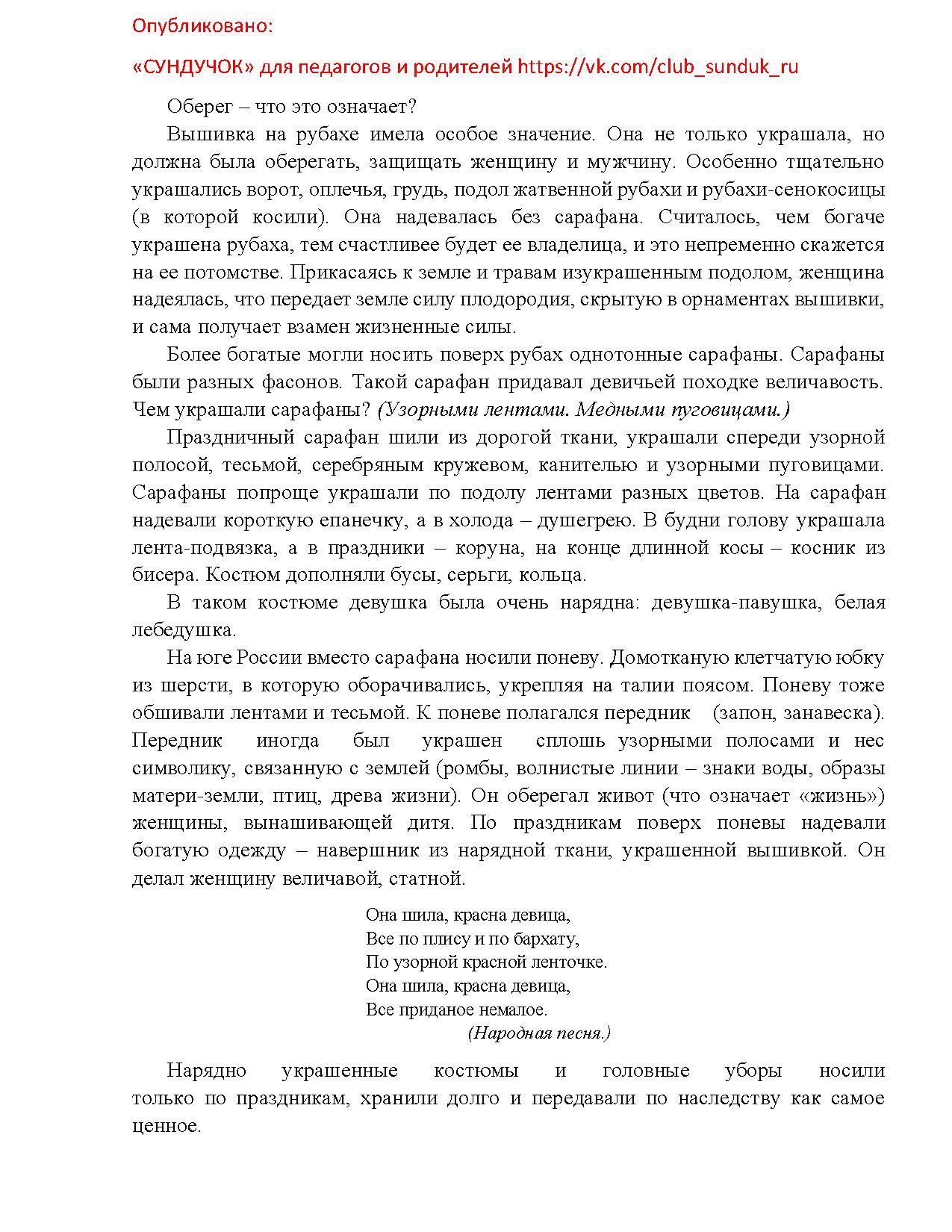 Национальная одежда – это своеобразная книга, научившись читать которую можно много узнать о традициях, обычаях и истории своего народа. Жизнь крестьянина была неразрывно связана с природой, возделыванием земли и соответствующими трудовыми циклами. Праздник либо завершал какой-нибудь сложный этап в нелегкой крестьянской жизни, либо предшествовал следующему важному этапу. Праздники ждали, к ним готовились.
