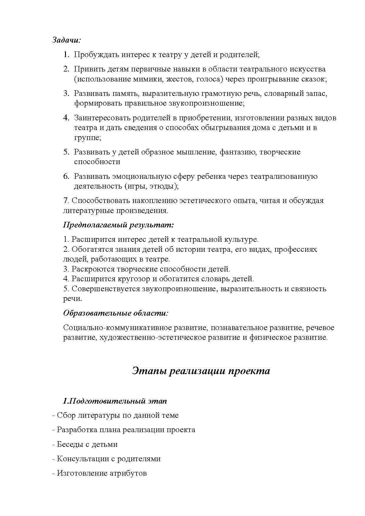 Театр был и остаётся действенным помощником в нравственном и эстетическом воспитании детей. Хороший мудрый спектакль даёт очень много и уму, и душе маленького зрителя, так как побуждает думать и сопереживать. Непосредственное участие в театральной постановке развивает юного актёра интеллектуально, творчески, духовно и физически. Заучивание текста роли тренирует память. Сценическое движение учит управлять своим телом. Взаимодействие с партнёрами на сцене-это особый ценный опыт общения, формирующий умение контактировать и работать с людьми. Необходимость действовать на публике приучает владеть своими эмоциями, творчески раскрепощает.