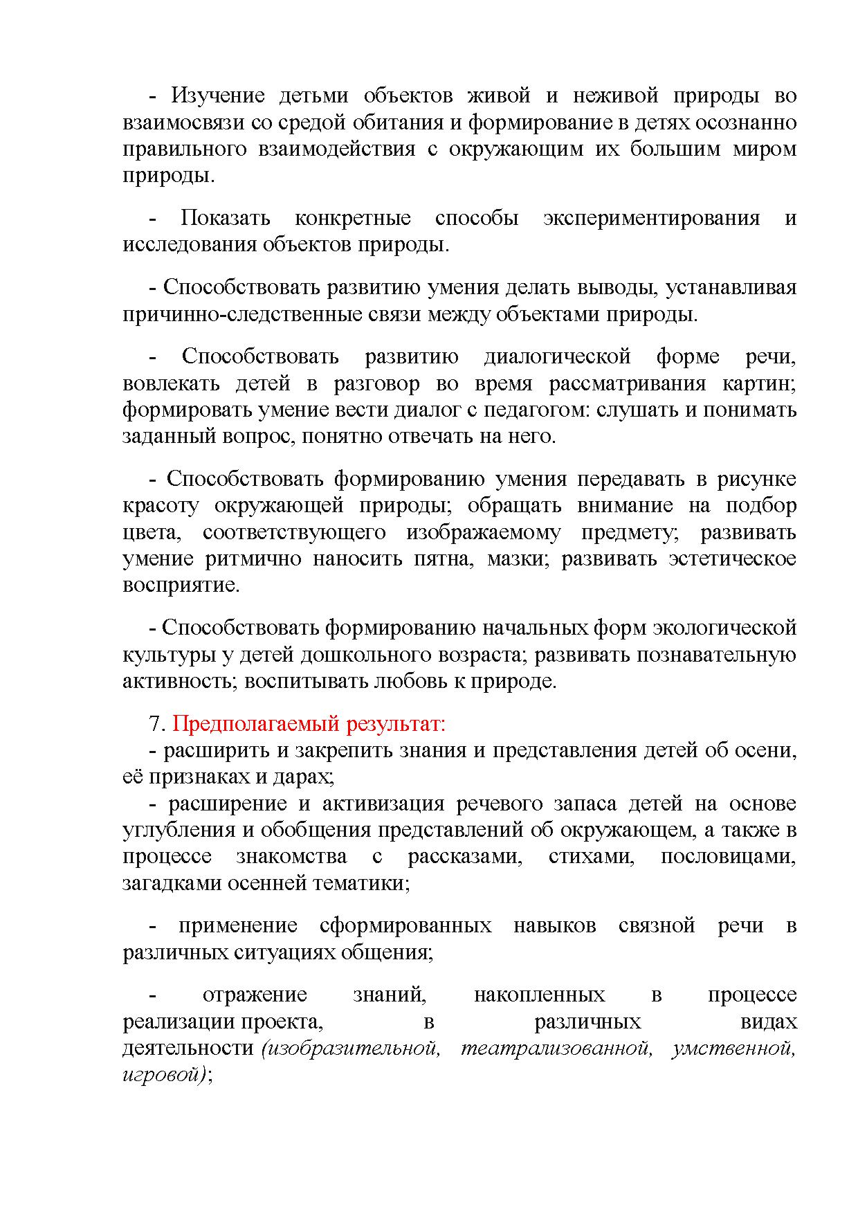 Дети в недостаточной степени имеют представление об осенних явлениях в живой и неживой природе. Не всегда точно могут определить значение слов «золотая осень», «унылая пора», подбирать к существительным прилагательные и глаголы. В ходе проекта решается задача повышения речевой активности детей, совершенствование связной речи, развитие словаря.