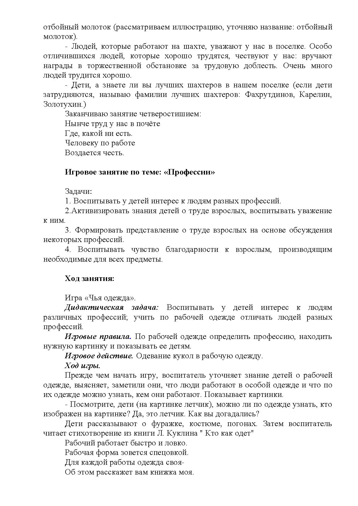1. Познакомить детей с трудом шахтеров, разными профессиями: ламповщик, погрузчик, машинист, электромеханик и т. д.