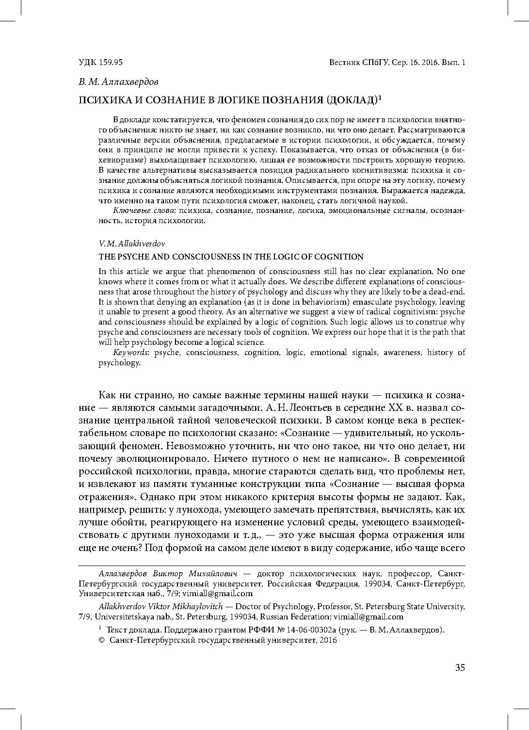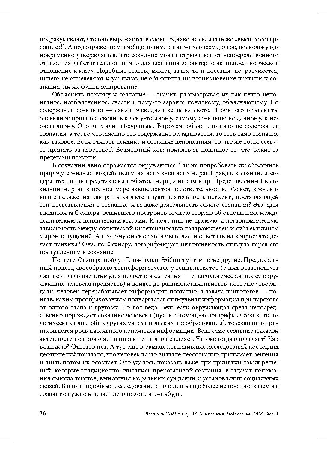 В докладе констатируется, что феномен сознания до сих пор не имеет в психологии внятного объяснения: никто не знает, ни как сознание возникло, ни что оно делает.