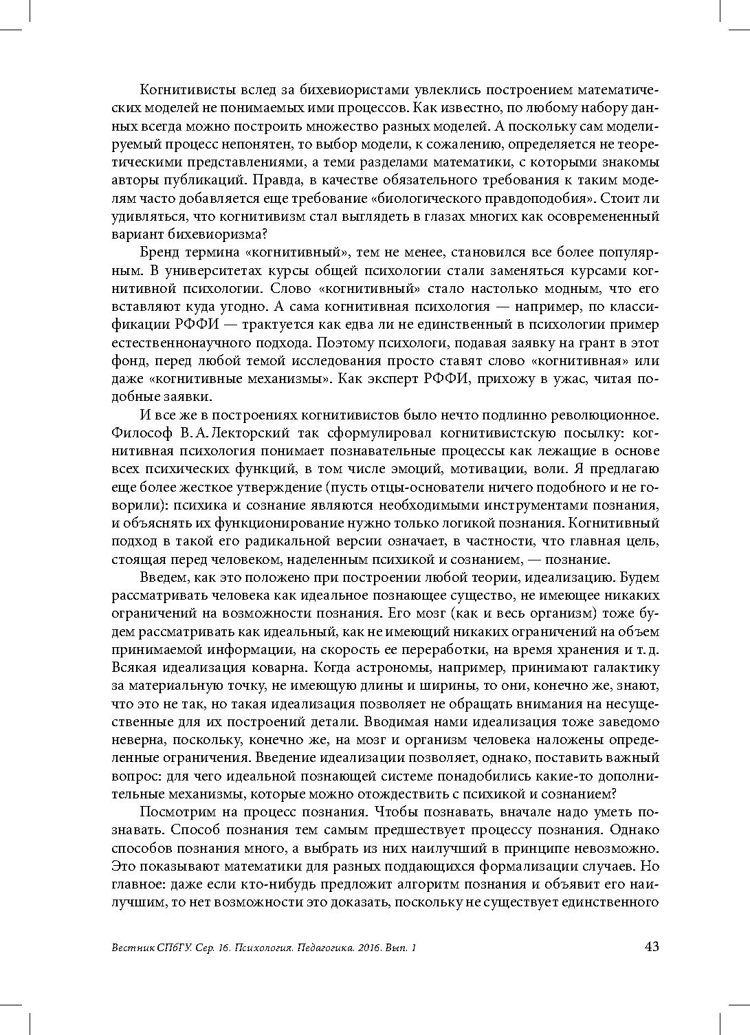 Рассматриваются различные версии объяснения, предлагаемые в истории психологии, и обсуждается, почему они в принципе не могли привести к успеху. Показывается, что отказ от объяснения (в бихевиоризме) выхолащивает психологию, лишая ее возможности построить хорошую теорию.