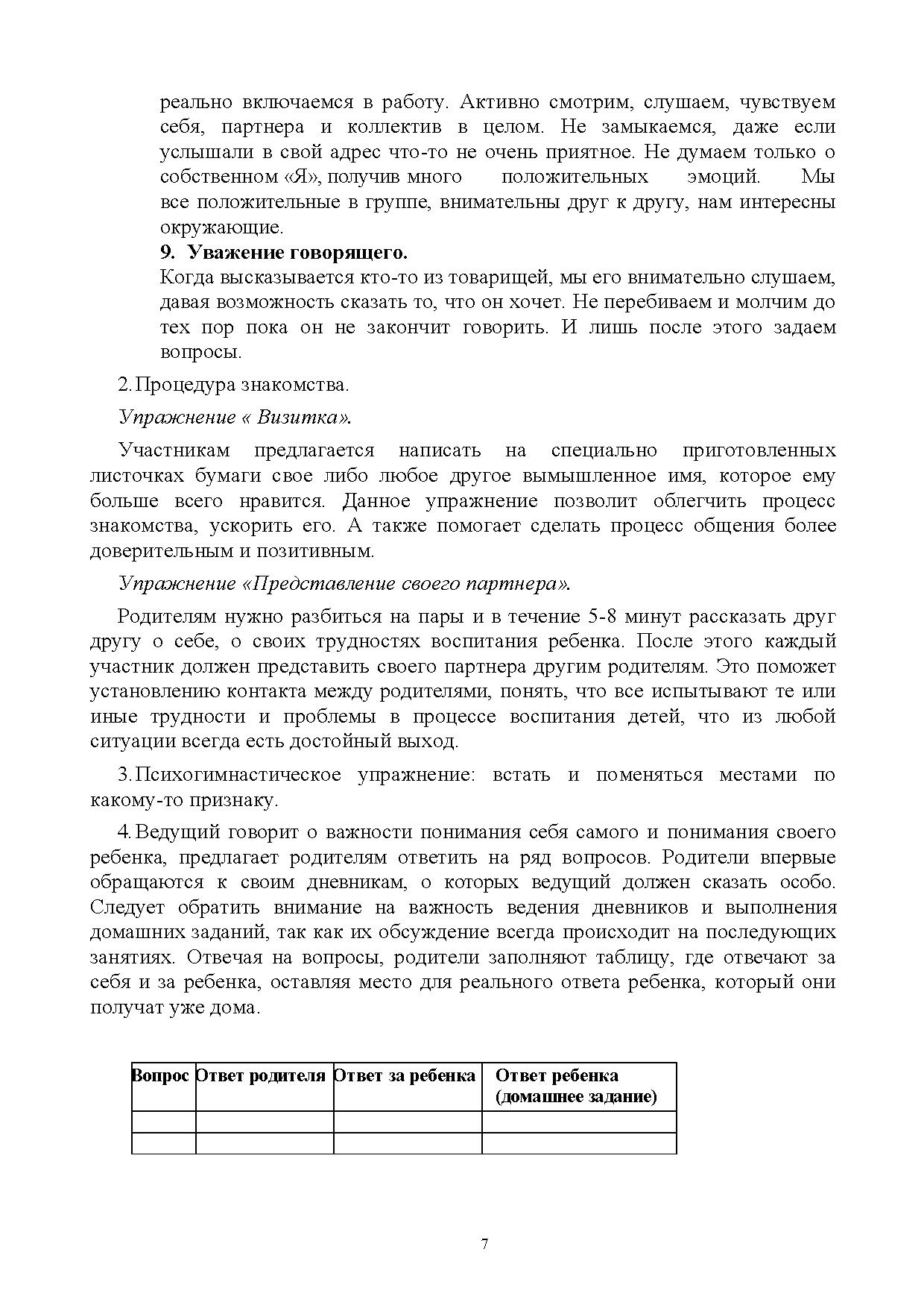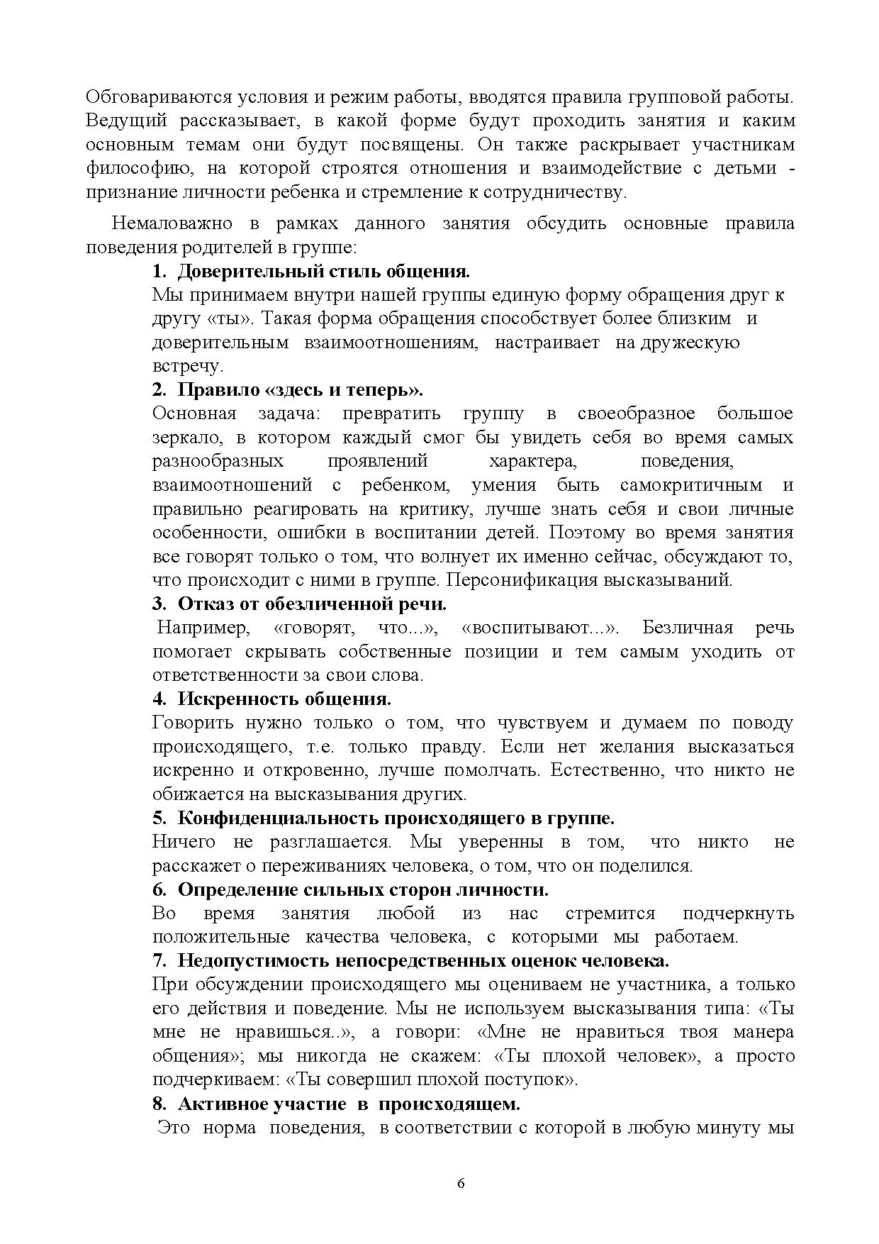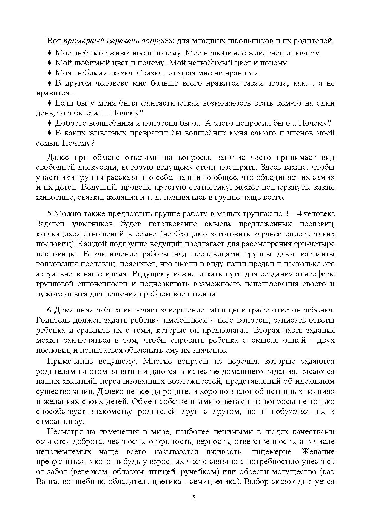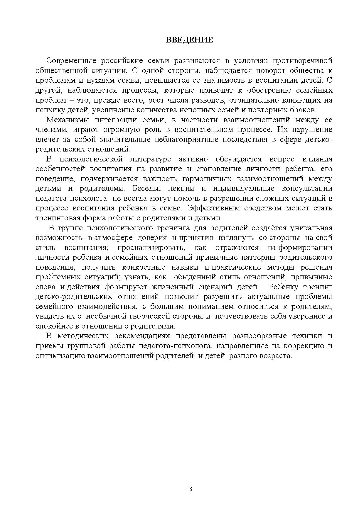 Настоящие методические материалы включают описание разнообразных техник и приемов активной групповой работы, направленных на коррекцию и оптимизацию взаимоотношений родителей и детей разного возраста.
