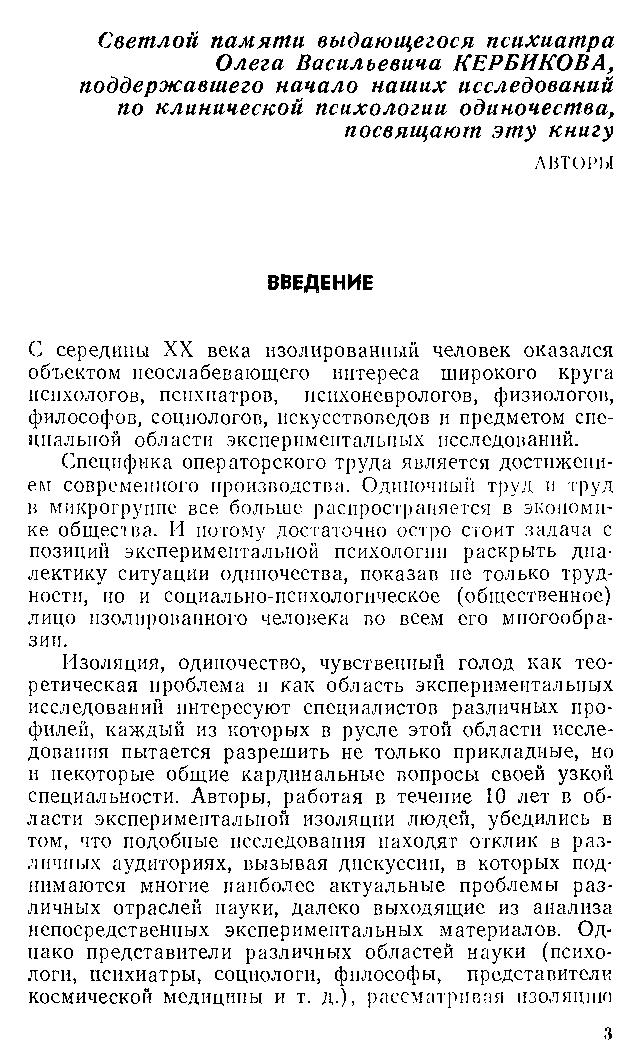 Актуальность проблемы изоляции в условиях одиночества для современной психологии и психиатрии и отсутствие обобщающих отечественных работ в этой области побудили авторов к написанию данной книги.