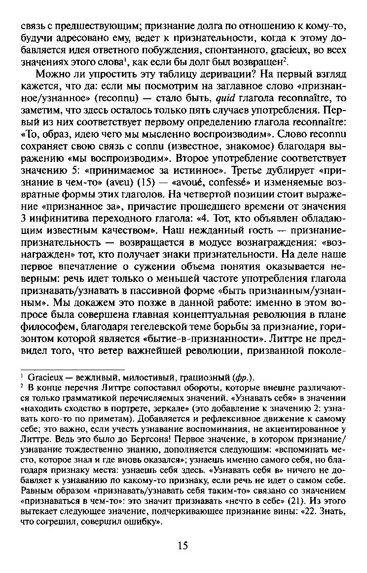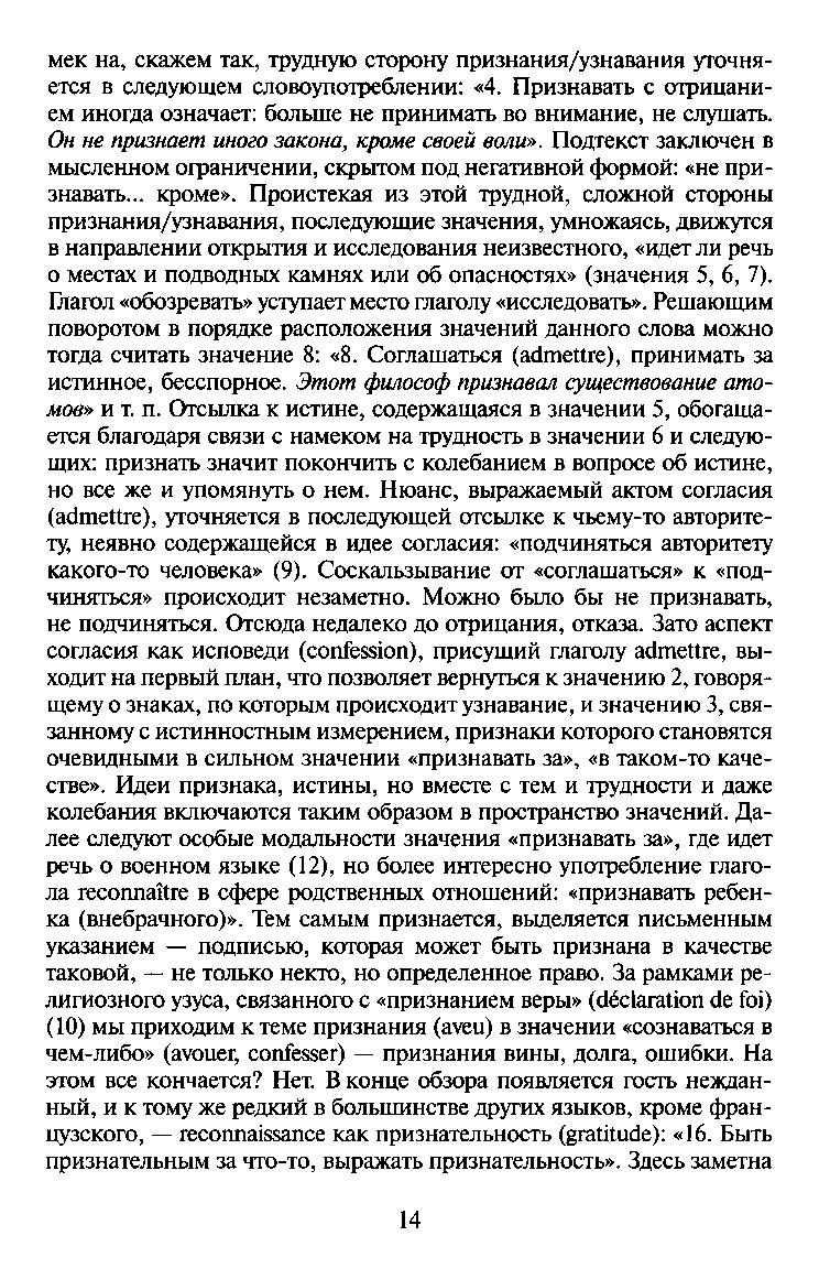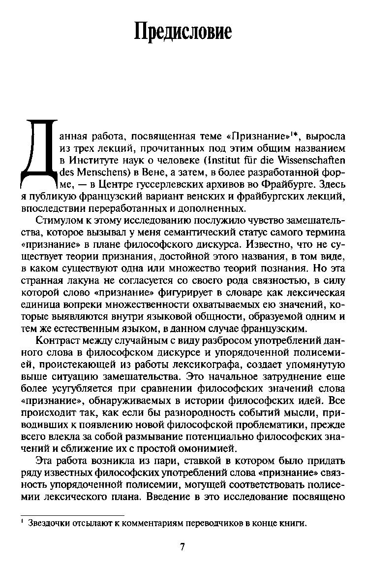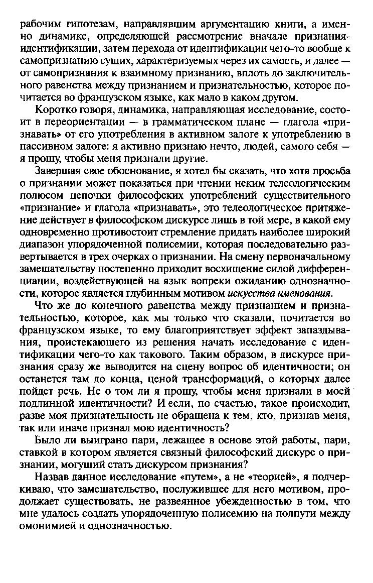 Книга классика западной философии XX века Поля Рикёра посвящена философской разработке теории признания. План, которому следует здесь мыслитель, таков: сначала рассмотрение признания-идентификации, затем переход от идентификации чего-то вообще к самопризнанию человека, к его самости и далее от самопризнания к взаимному признанию, вырастающему в человеческую взаимность, которая проходит непростой путь от взаимного непризнания до миролюбия и состояния мира.