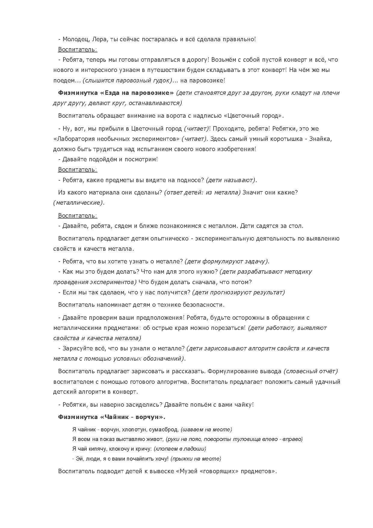 4. Учить в ходе экспериментирования выявлять свойства и качества металла; составлять алгоритм описания материала.