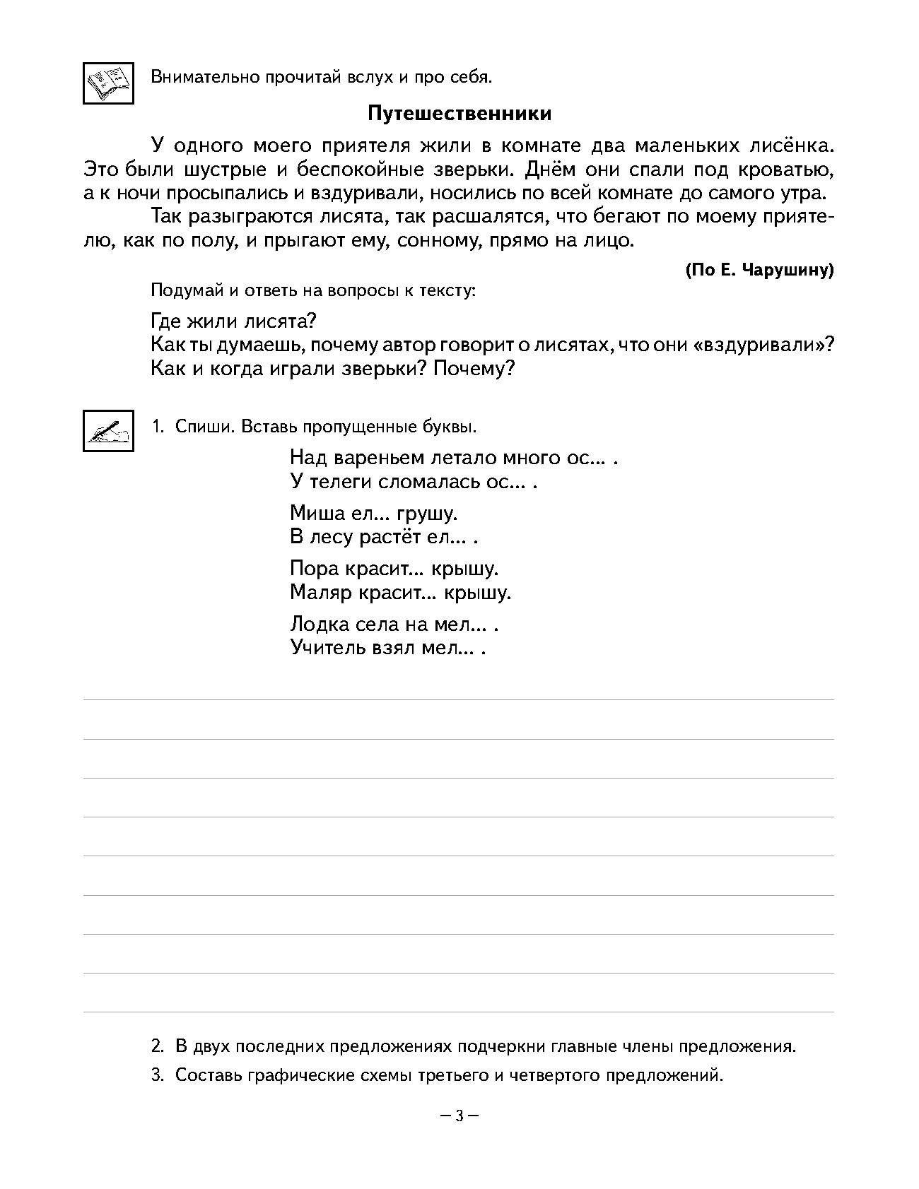 Рабочая тетрадь по русскому языку, чтению и развитию речи предназначена для учащихся 3 классов. Рекомендуется для использования в работе педагогами, а также родителями школьников.