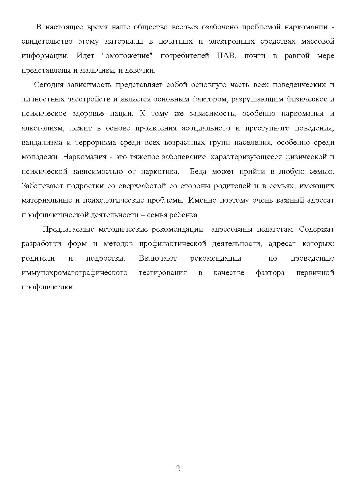 Методические рекомендации затрагивают основные вопросы, касающиеся профилактики ПАВ в образовательной среде, а также иммунохроматографического тестирования на наркотики.
