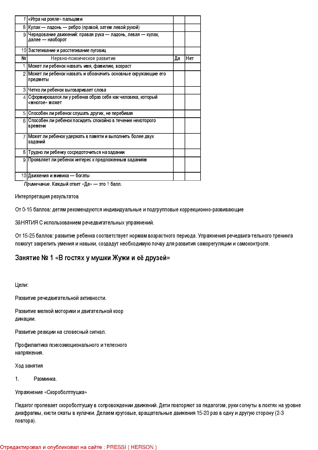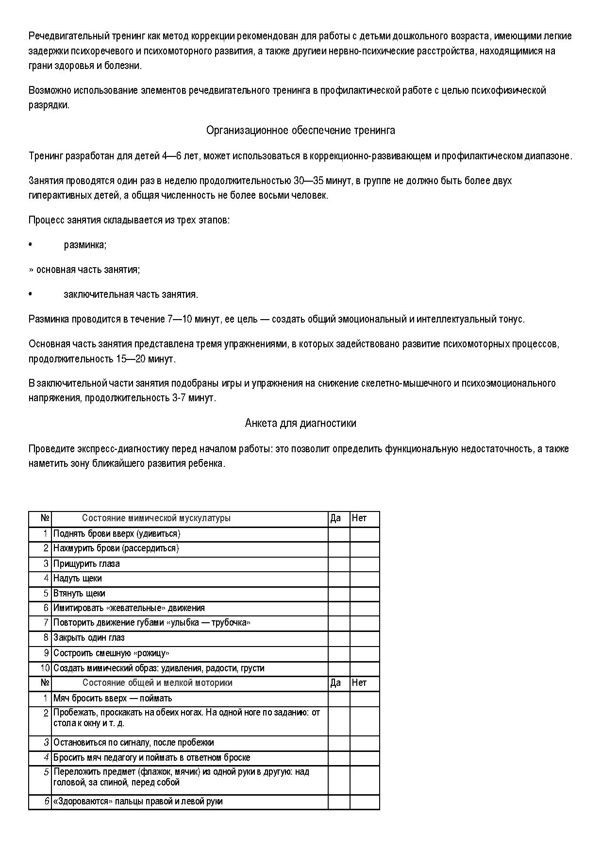 Речедвигательный тренинг - один из видов интегрированных занятий, проводящихся с целью укрепления психического и физического здоровья детей.