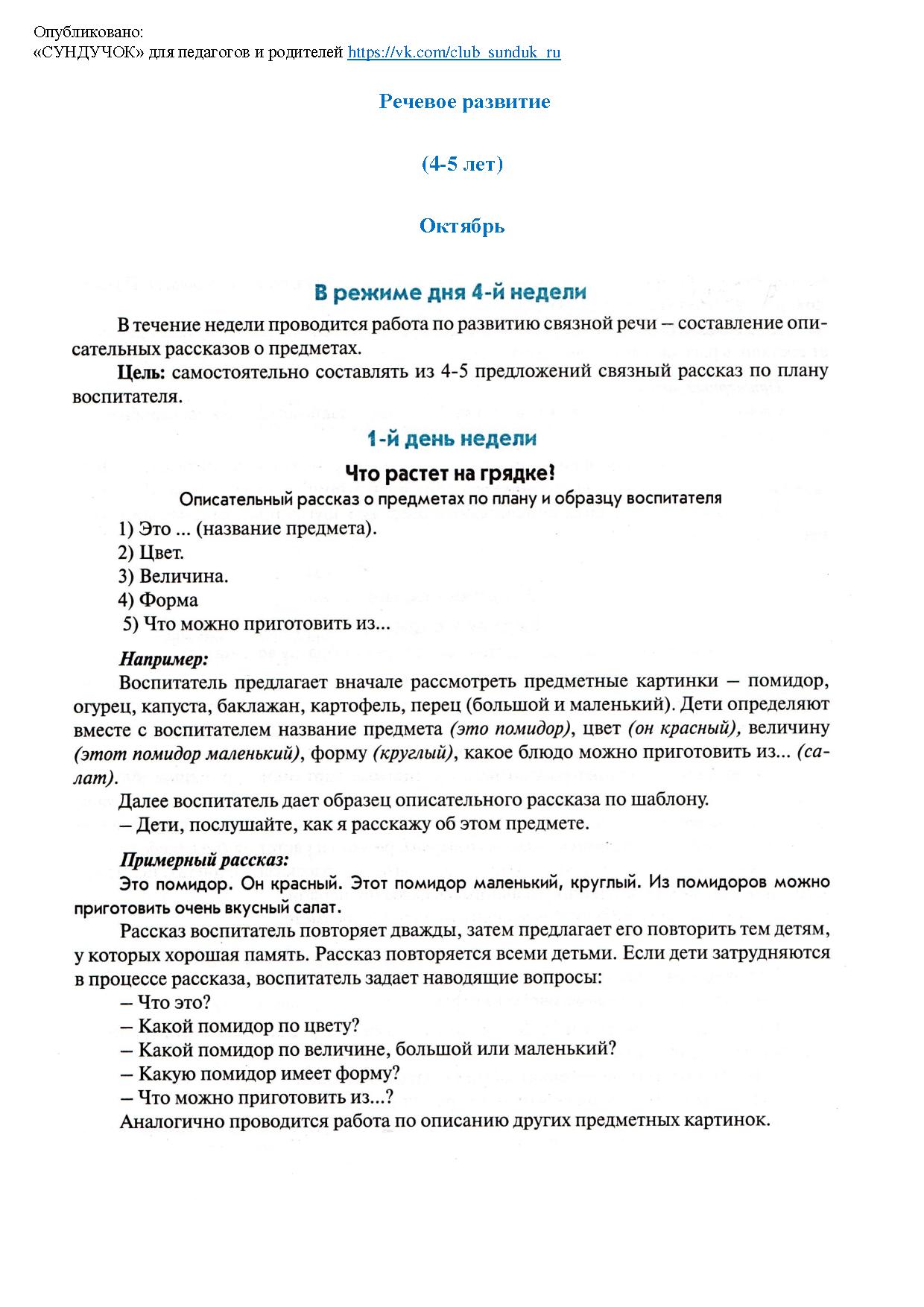 Речевое развитие (4-5 лет). Октябрь