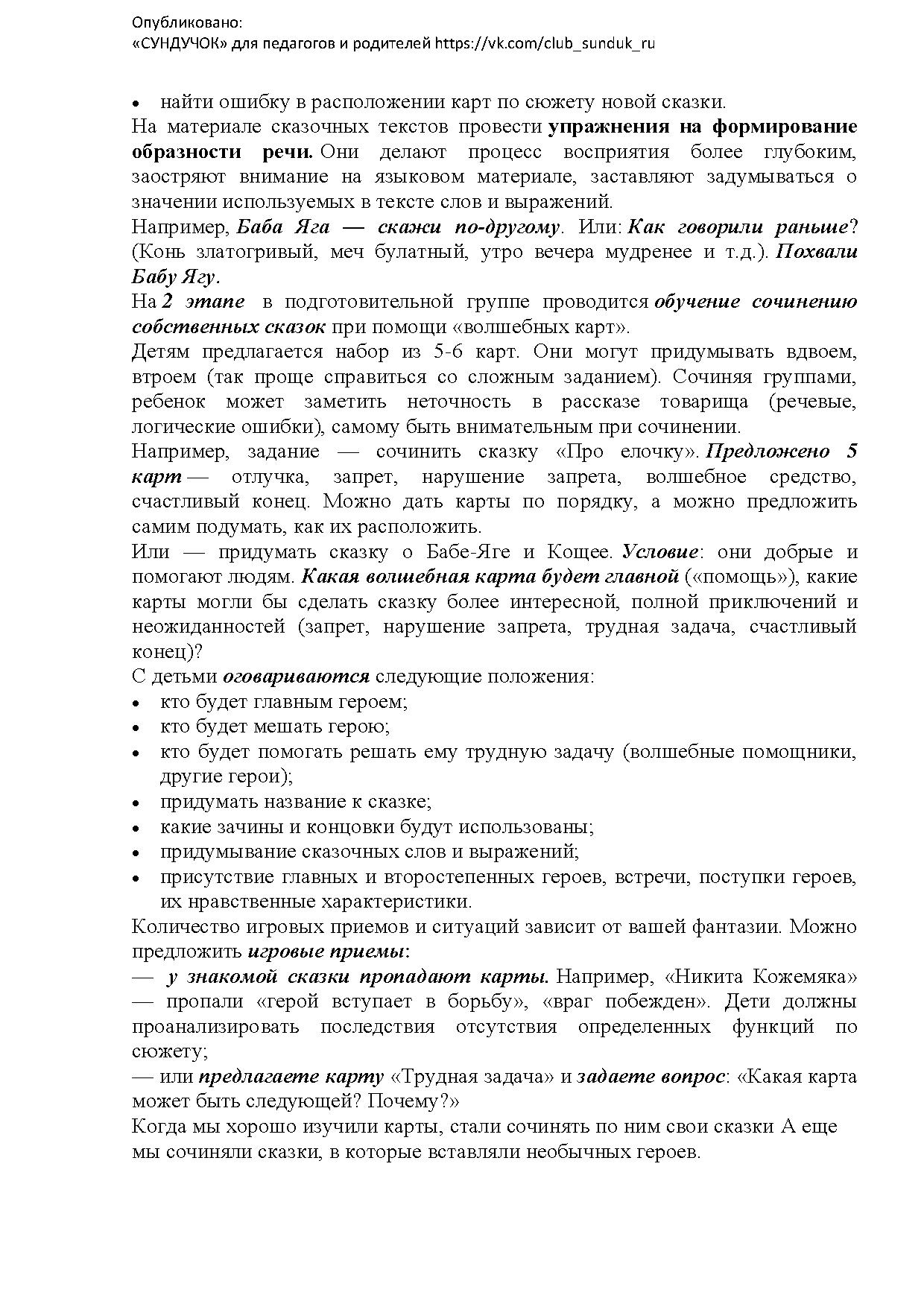 Дошкольники обладают уникальной возможностью в речевом творчестве, в частности, в области сочинительства собственных сказок, небылиц, однако, для формирования такого творчества необходимо создание оптимальных условий, способствующих наиболее полному раскрытию творческого потенциала личности ребенка. Одной из таких методик является использование карт Проппа для развития связной речи, которую я использую уже третий год.
