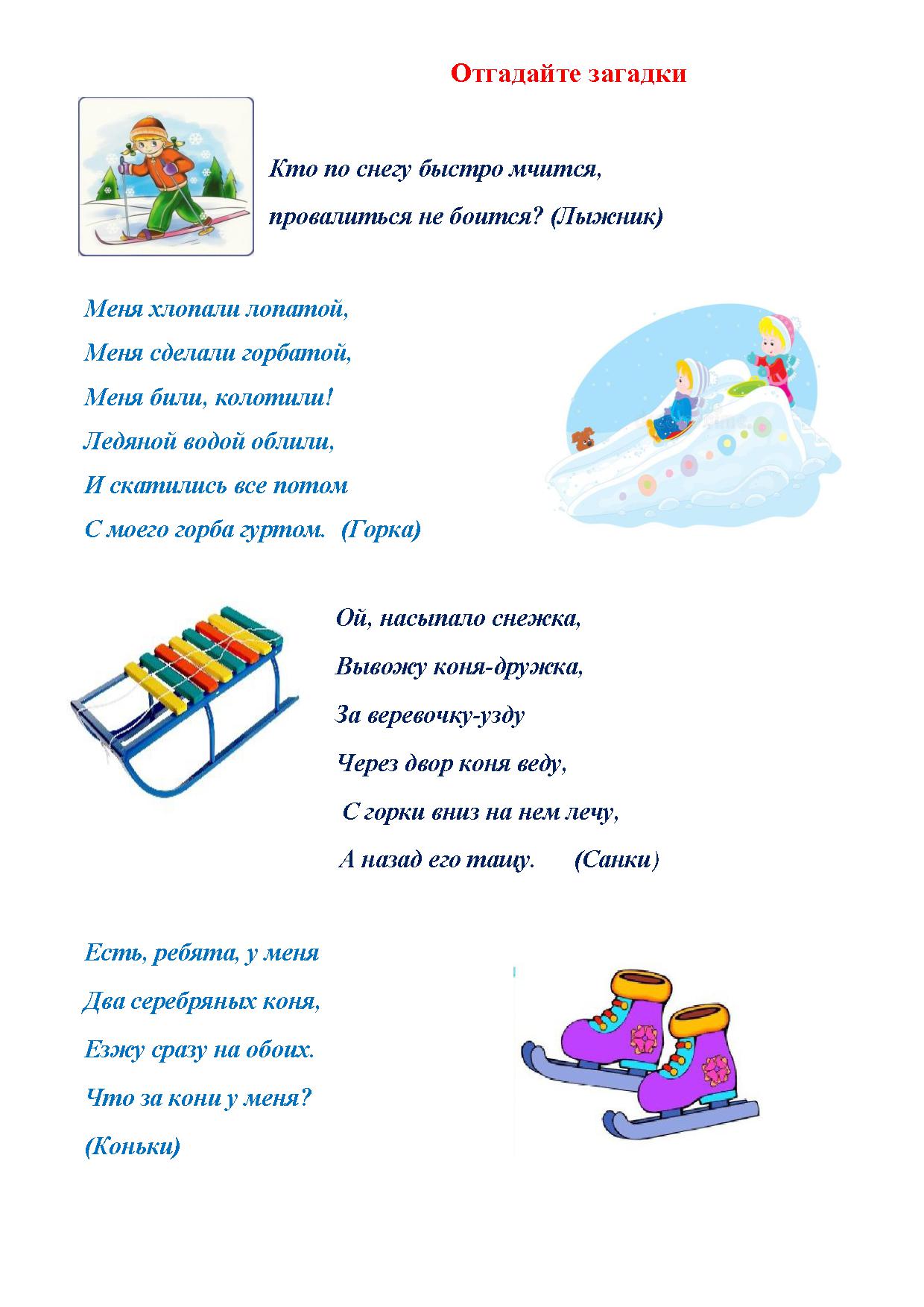 Рекомендации для родителей по теме недели "Зимние забавы"