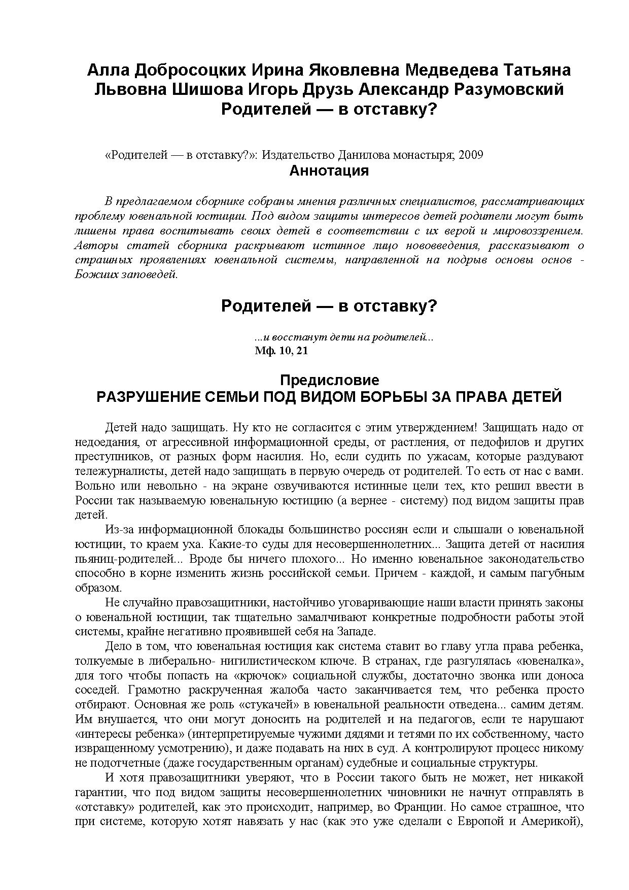 Авторы статей сборника раскрывают истинное лицо нововведения, рассказывают о страшных проявлениях ювенальной системы, направленной на подрыв основы основ - Божиих заповедей.
