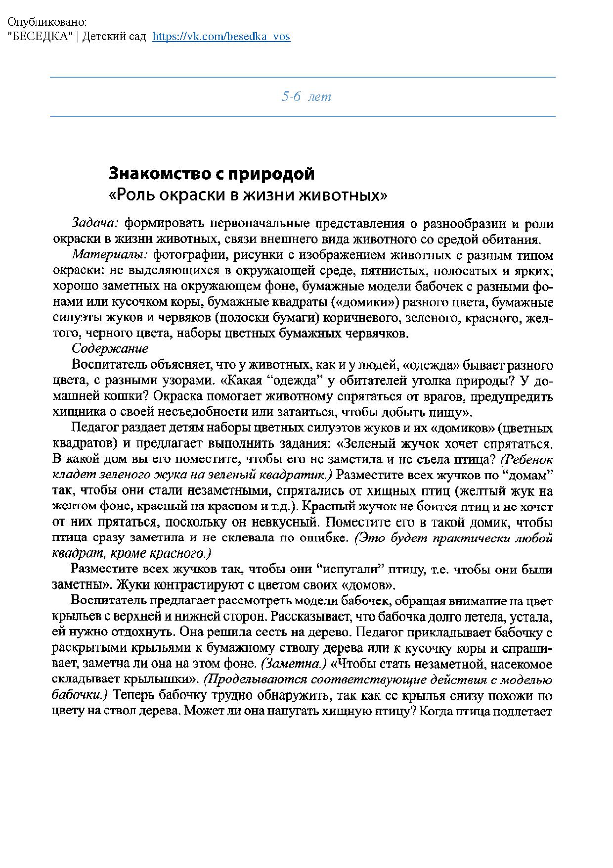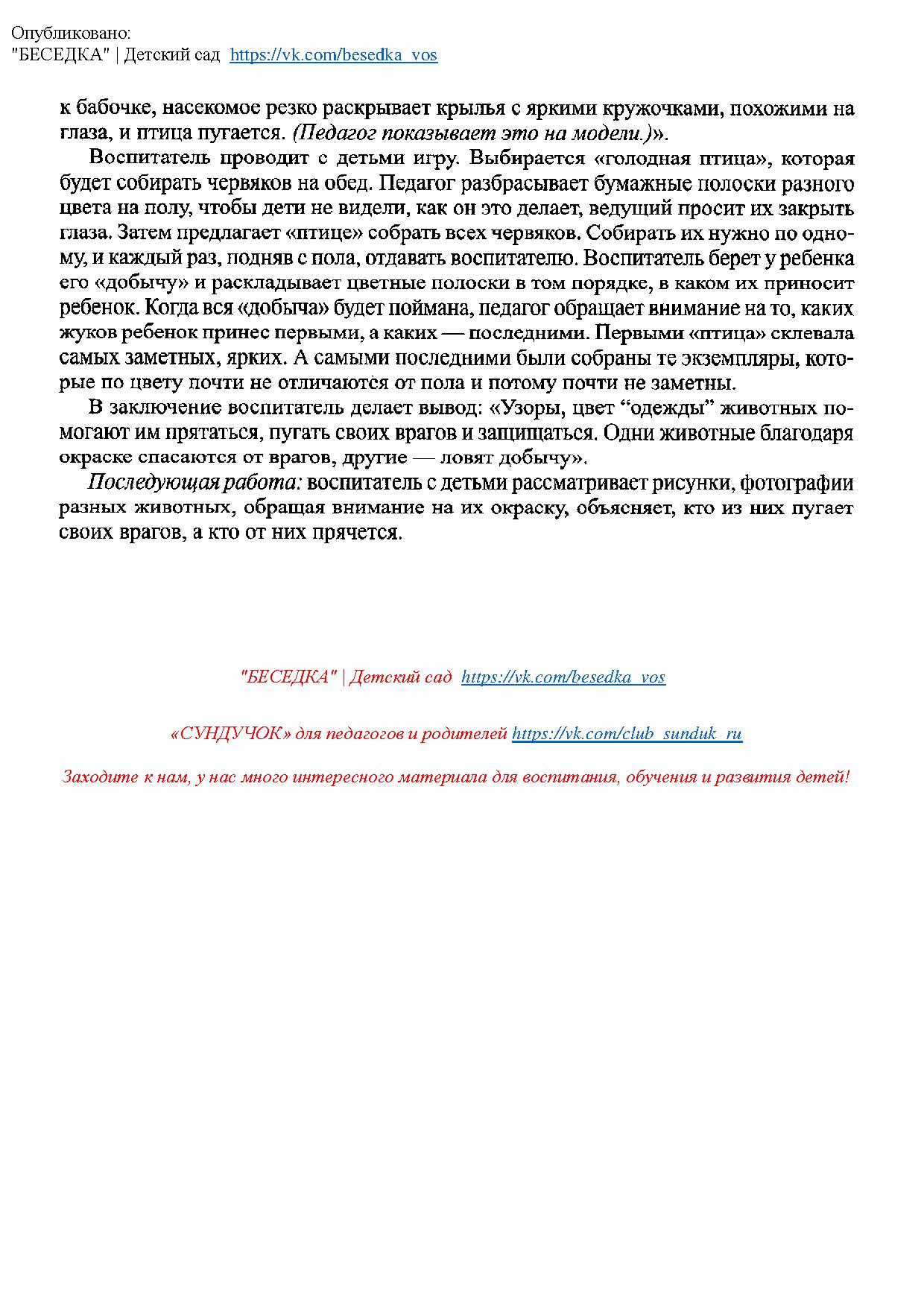 Цель: формировать первоначальные представления о разнообразии и роли окраски в жизни животных, о связи внешнего вида животного со средой его обитания.