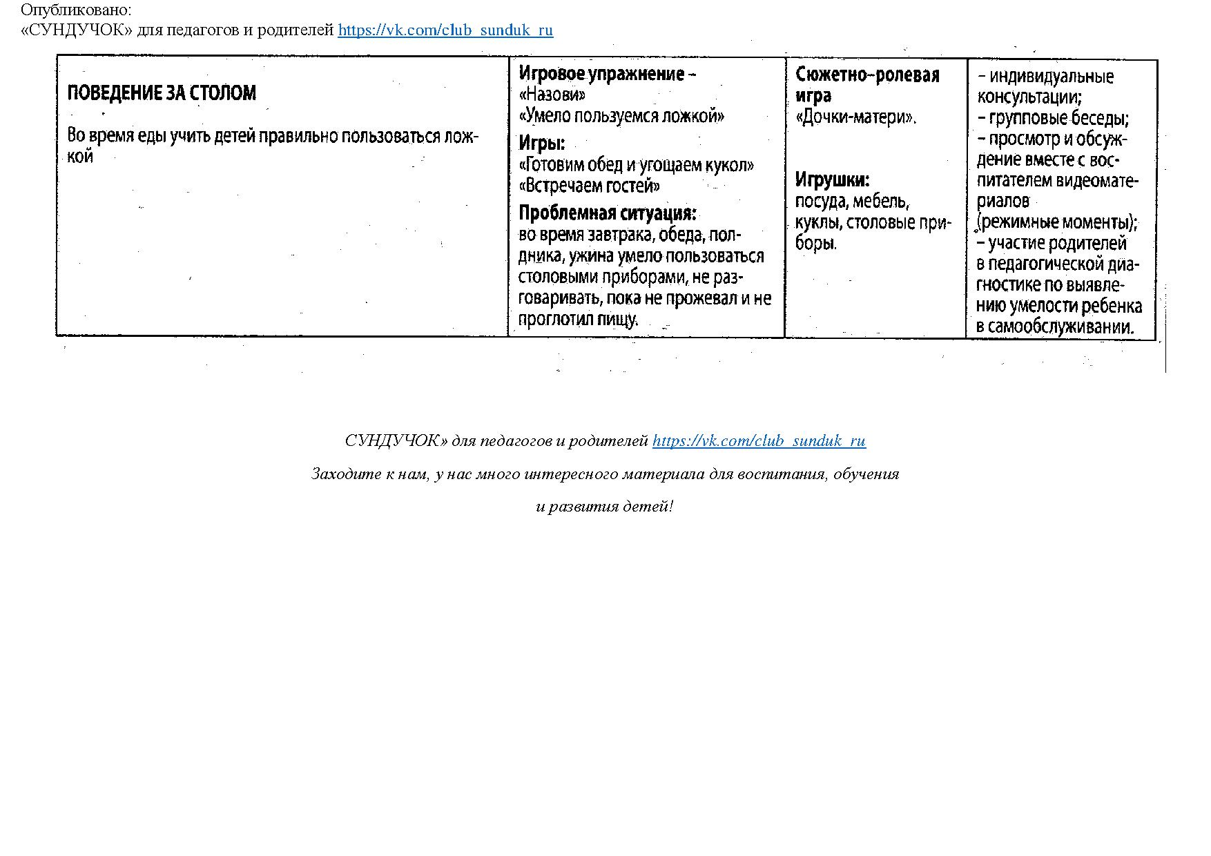 В освоении навыков самообслуживания, режимные моменты (гигиенические процедуры, кормление, сборы на прогулку и возвращение с неё, укладывание на сон, подъём) занимают большую часть времени бодрствования.