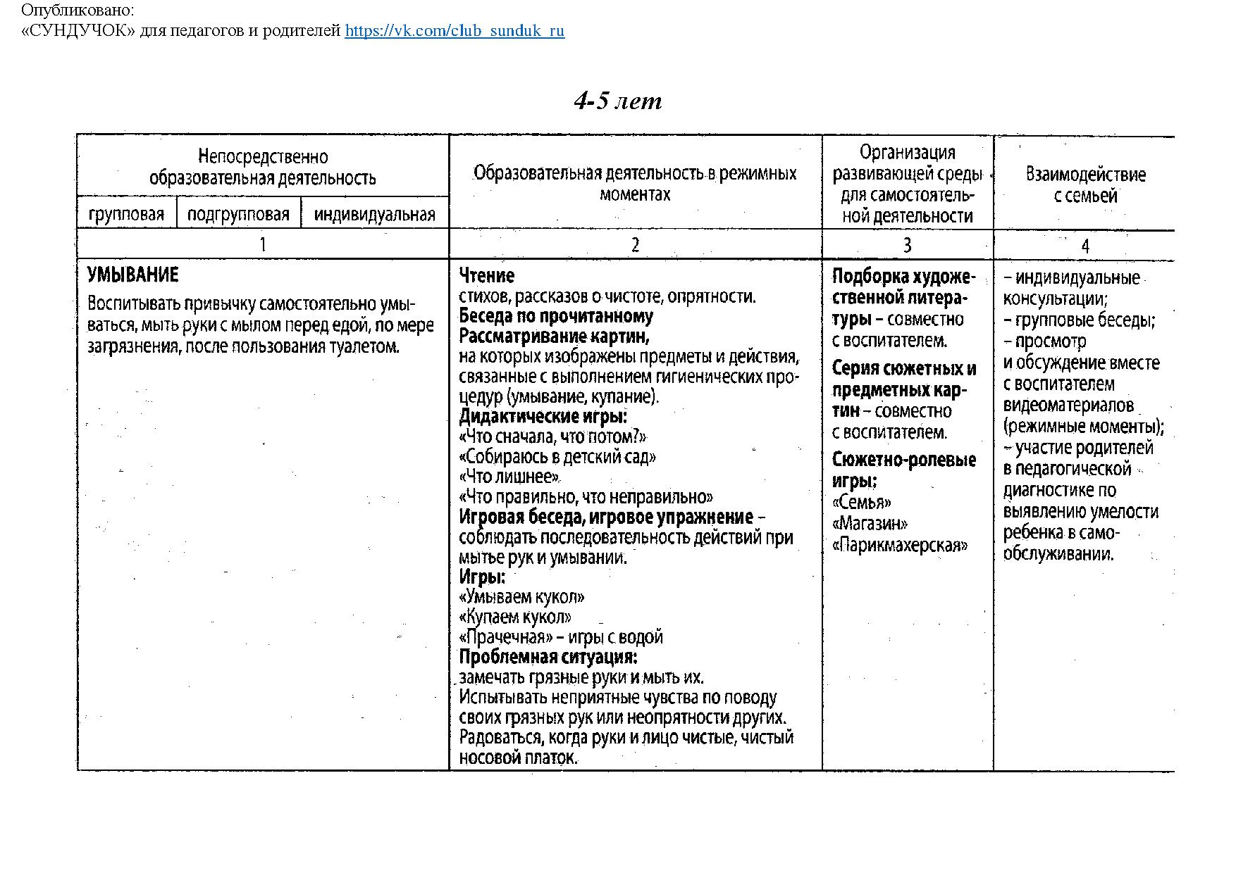 Самообслуживание (планирование) - 4-5 лет