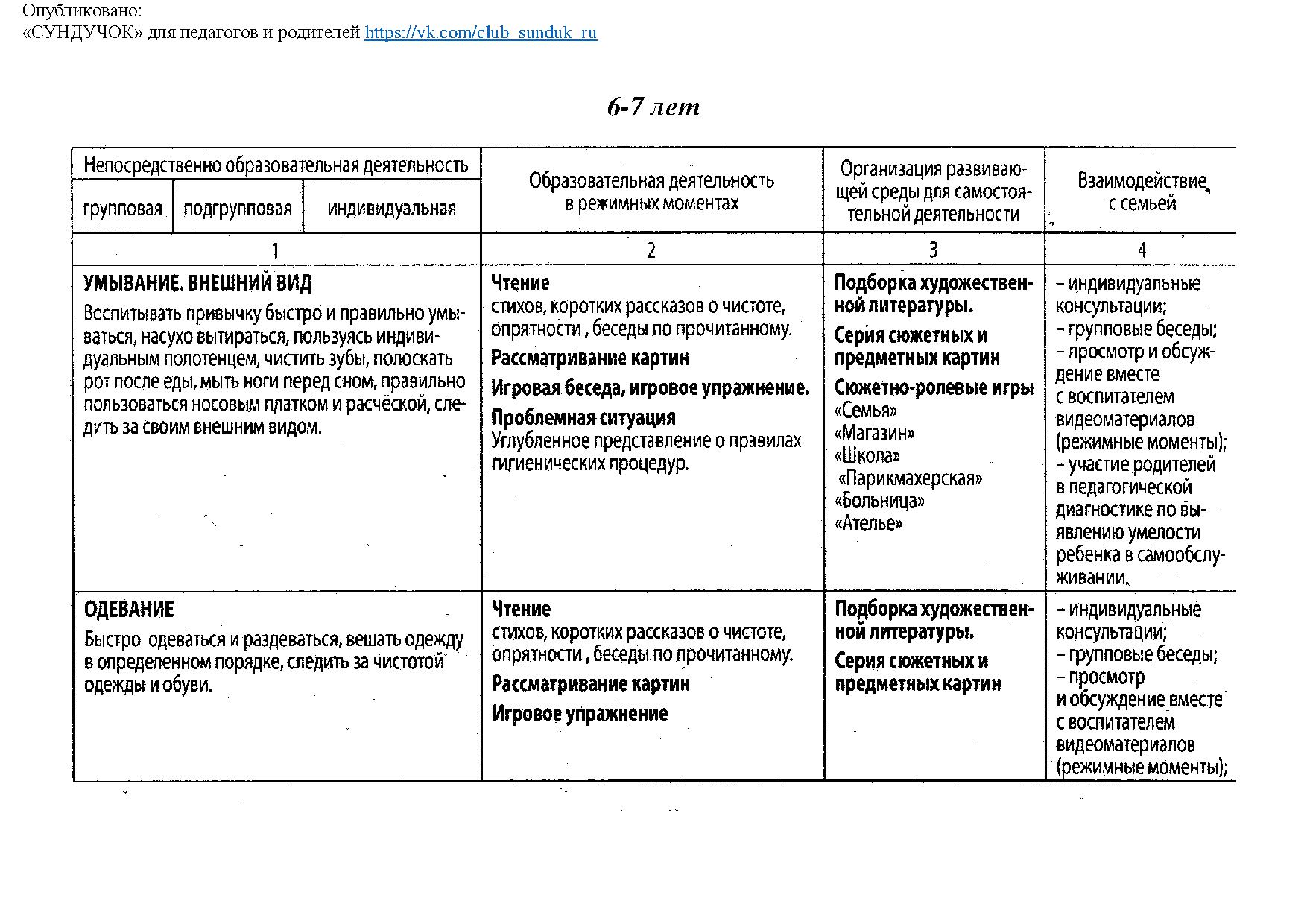 Самообслуживание (планирование) - 6-7 лет