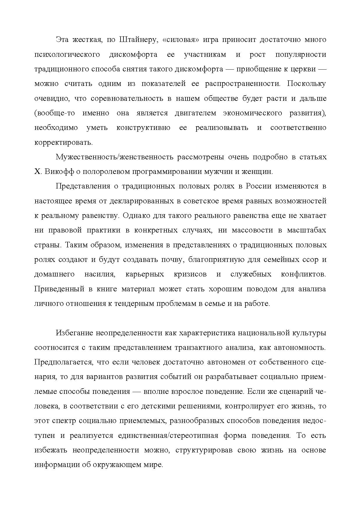 Соответствие концепции транзактного анализа реалиям современной России было весьма поверхностным, особенно если учесть перегруженность текстов Берна собственно американской спецификой — эти книги писались только для американцев либо для жителей соседних стран — Канады и Мексики.