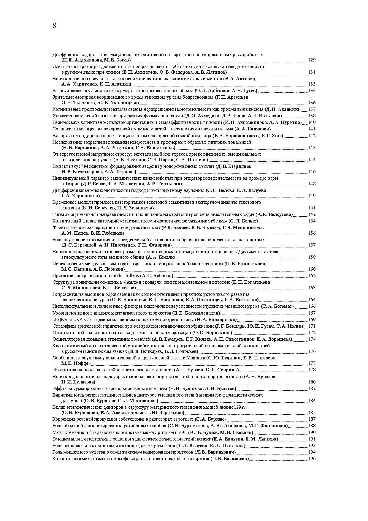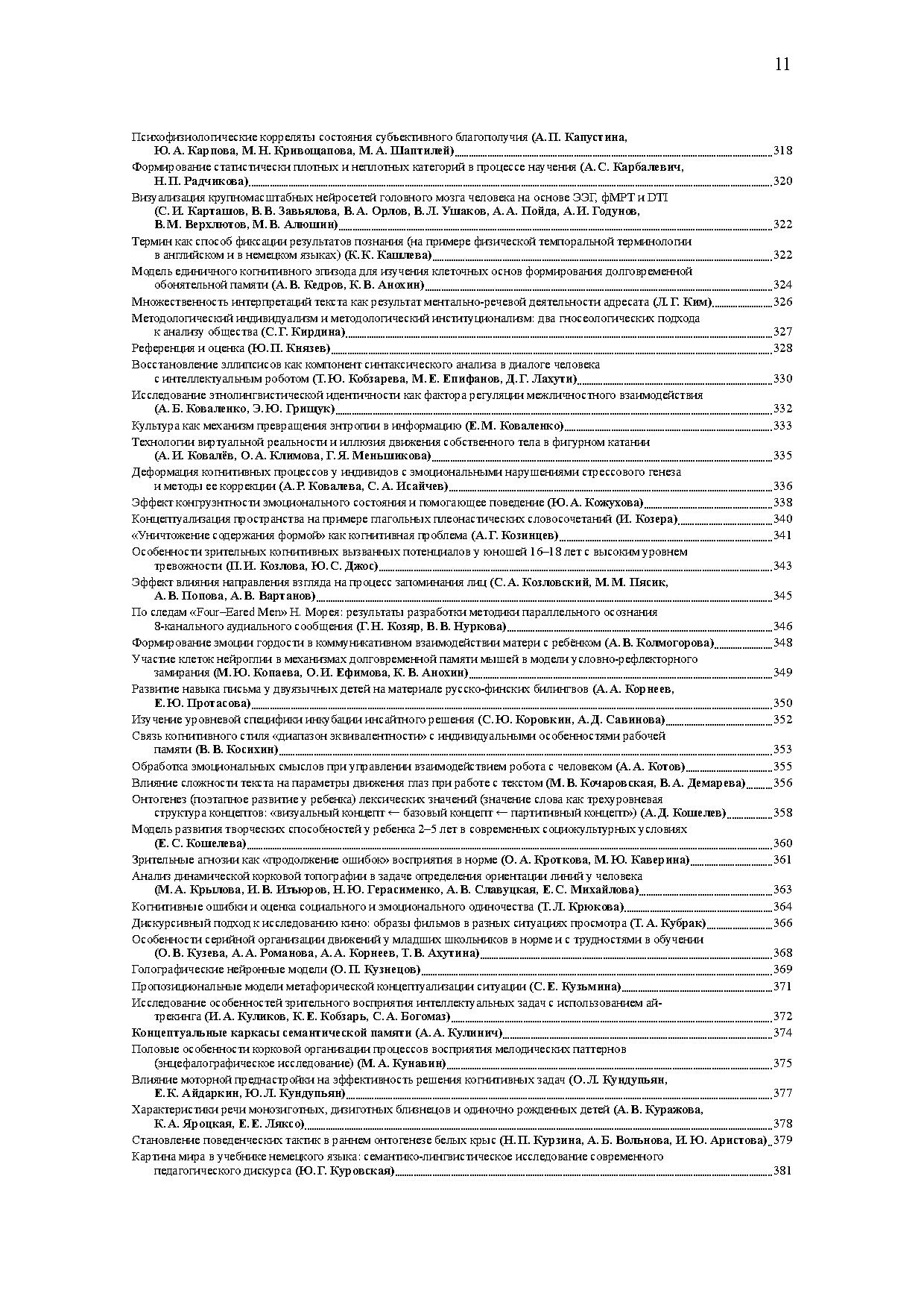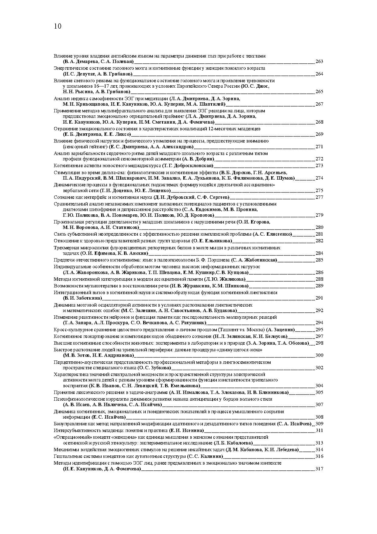 В центре дискуссий на конференции — проблемы обучения, интеллекта, восприятия, сознания, представления и приобретения знаний, специфики языка как средства познания и коммуникации, мозговых механизмов сложных форм поведения. В программе конференции также серия специализированных воркшопов, посвященных таким актуальным темам, как концептуальные структуры, особенности развития при билингвизме, проблема зрелости человека, языковая коммуникация, принятие решений. Материалы представляют собой тезисы пленарных лекций, устных и стендовых докладов, а также выступлений на воркшопах.