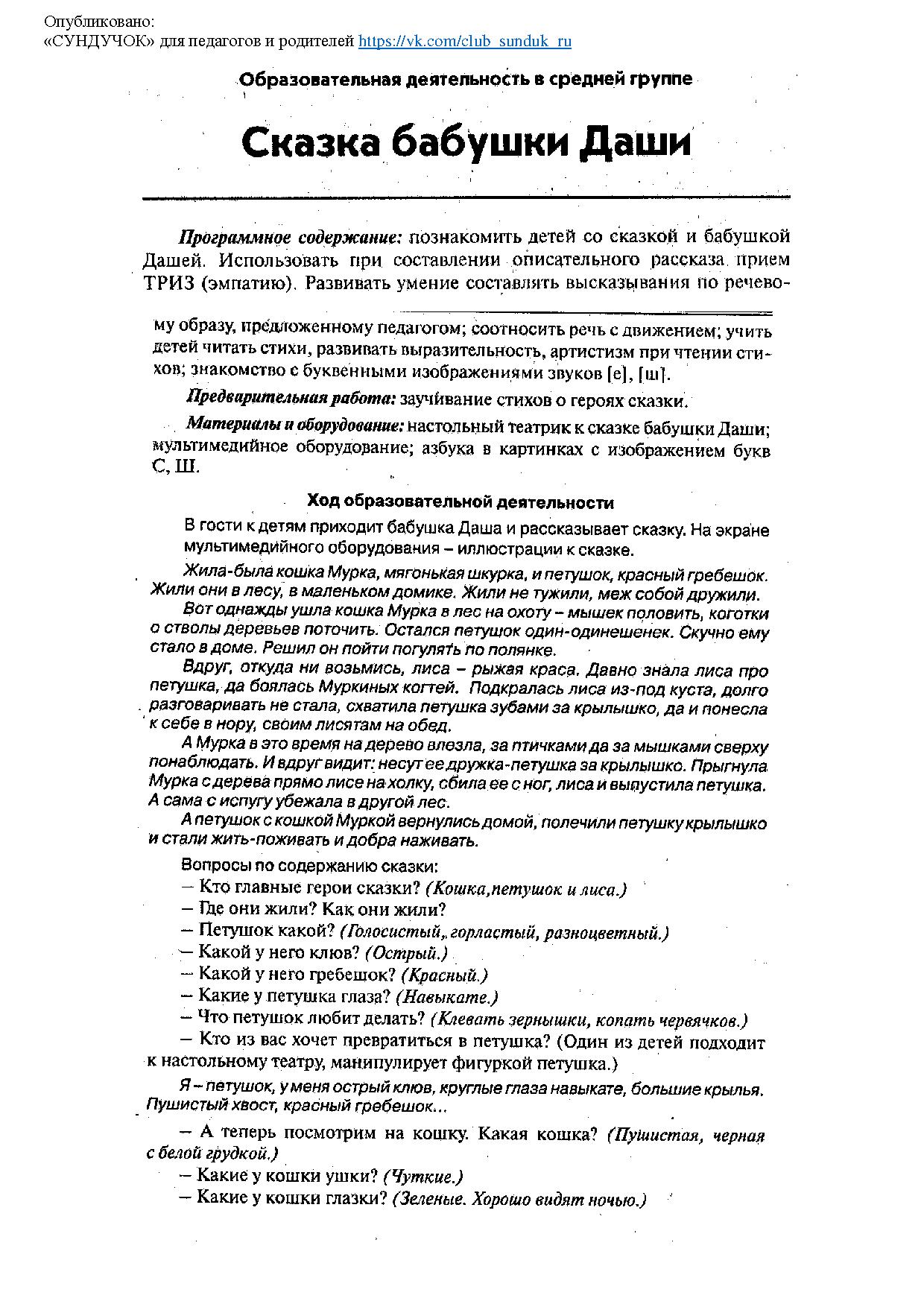 -познакомить детей со сказкой и с бабушкой Дашей;